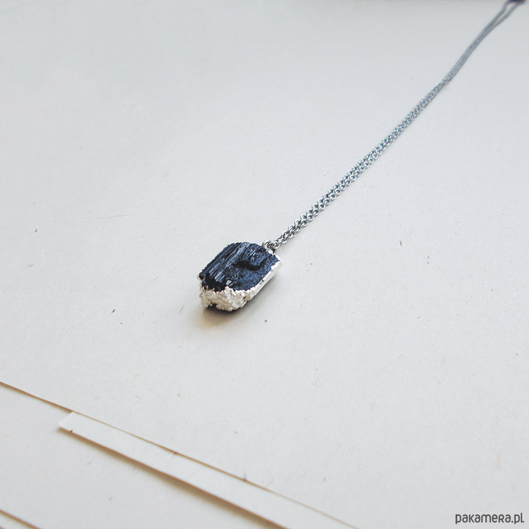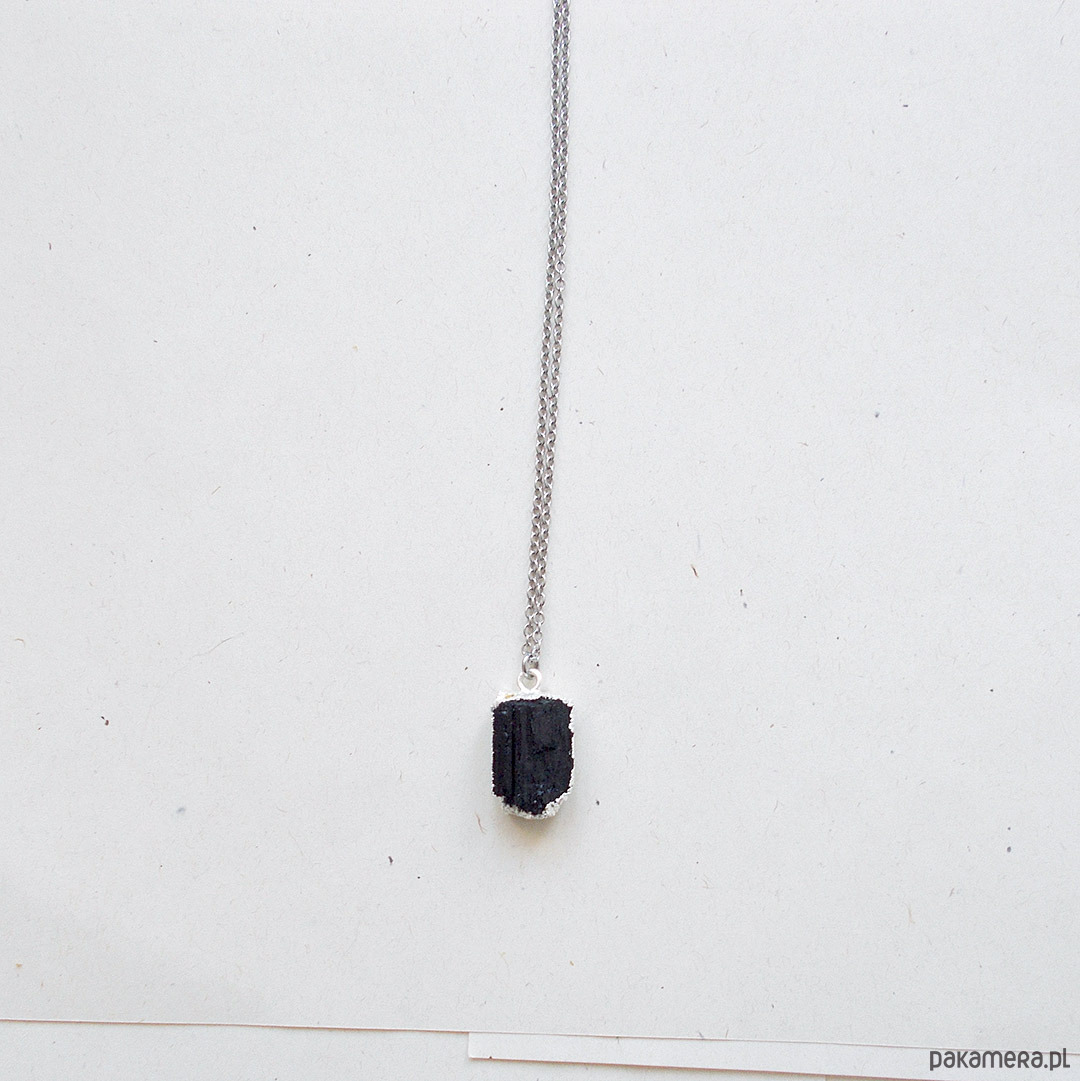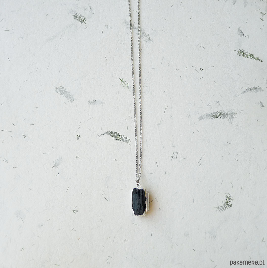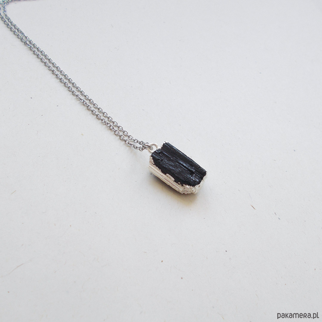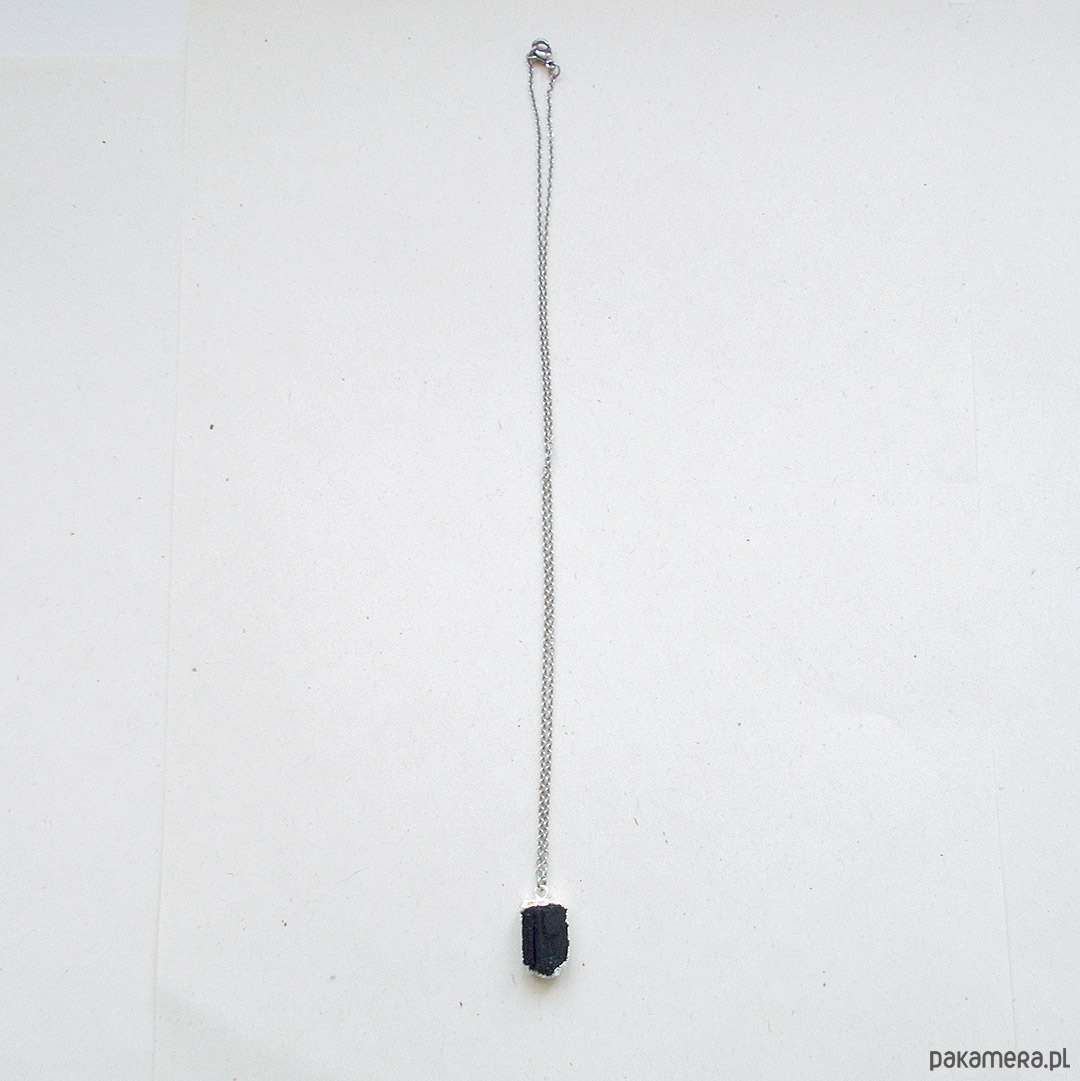 Unikalny wisiorek z czarnym, surowym kamieniem turmalinu