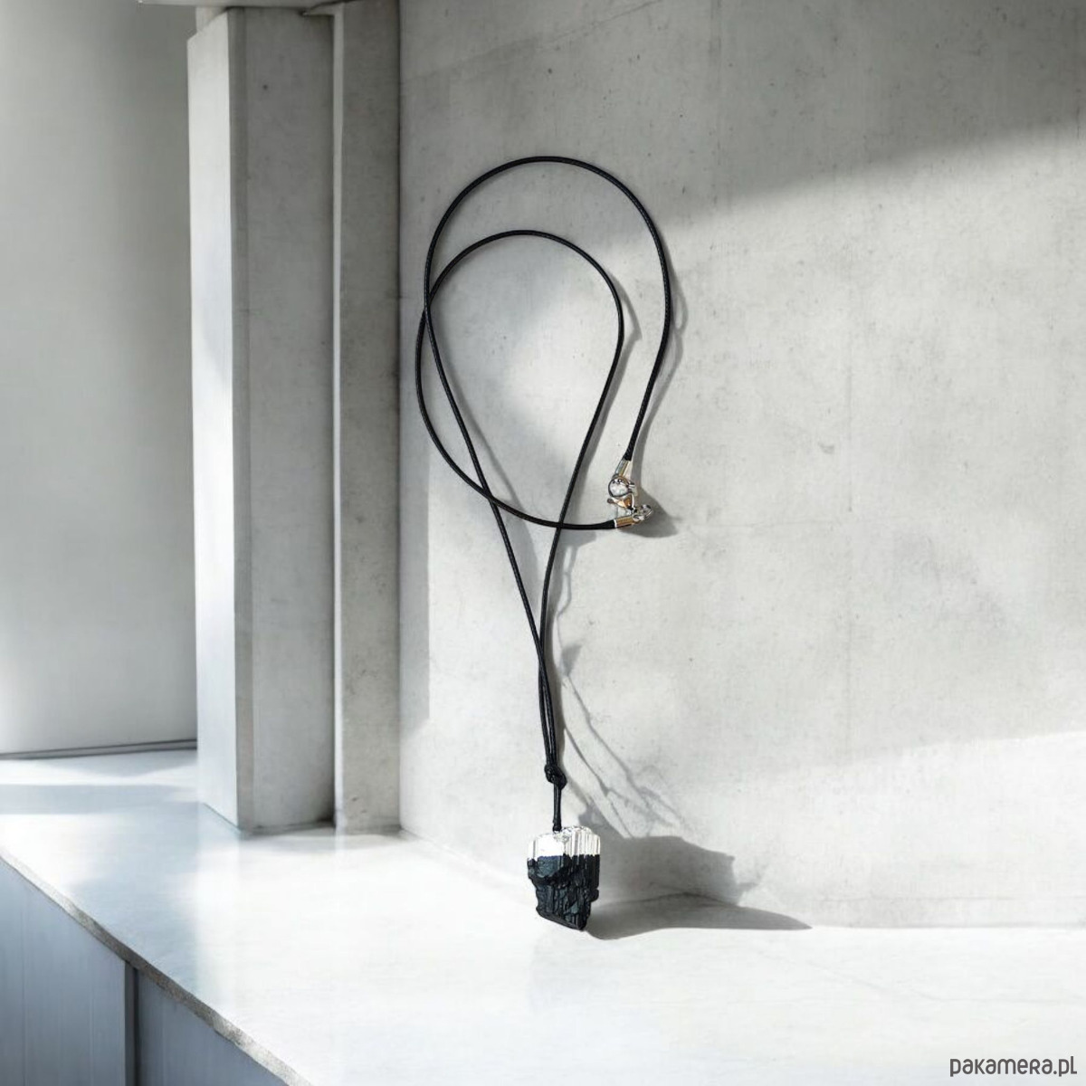 Umocowany na czarnym, solidnym, powlekanym sznurku