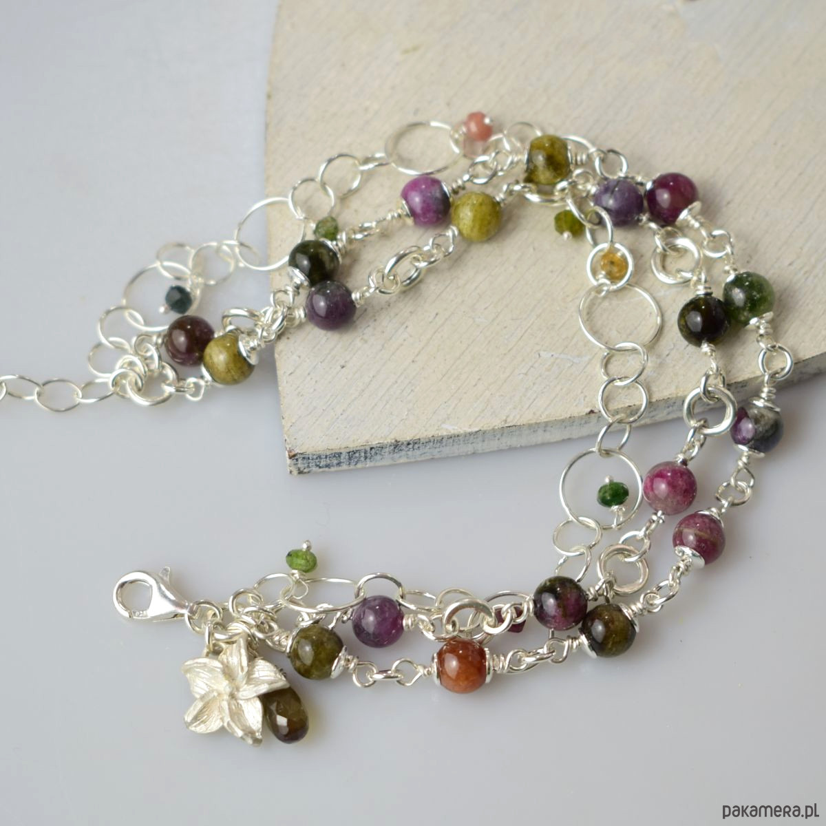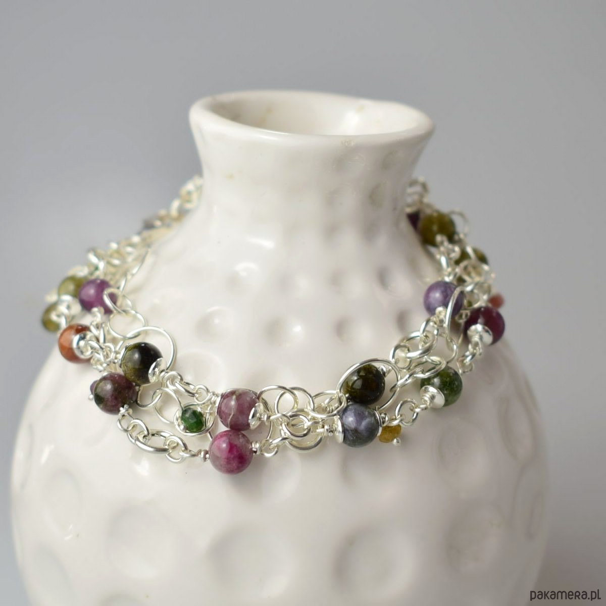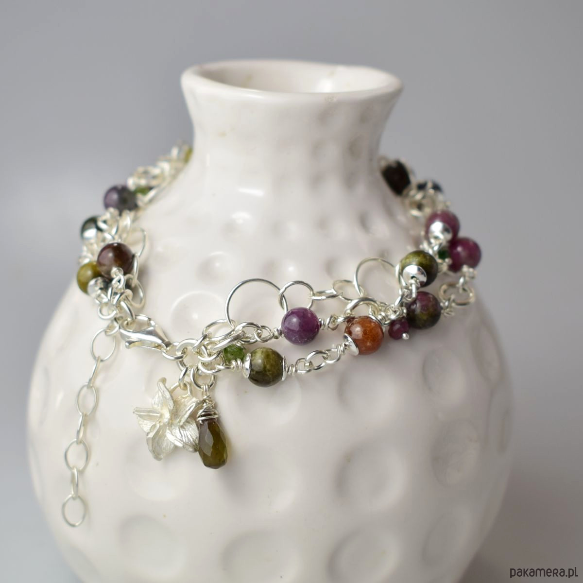 Bransoletka wykonana w całości ze srebra (próba 925) z turmalinu. Długość regulowana 20,5 - 24 cm. Biżuteria zostanie ozdobnie zapakowana.