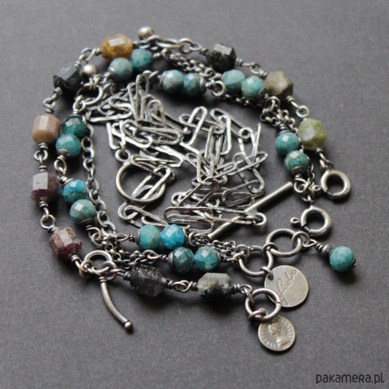 Każdy z turmalinów jest innej barwy, co dodaje bransoletce niezwykłej urody.