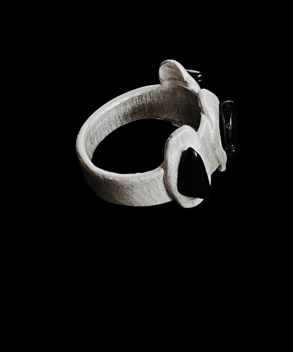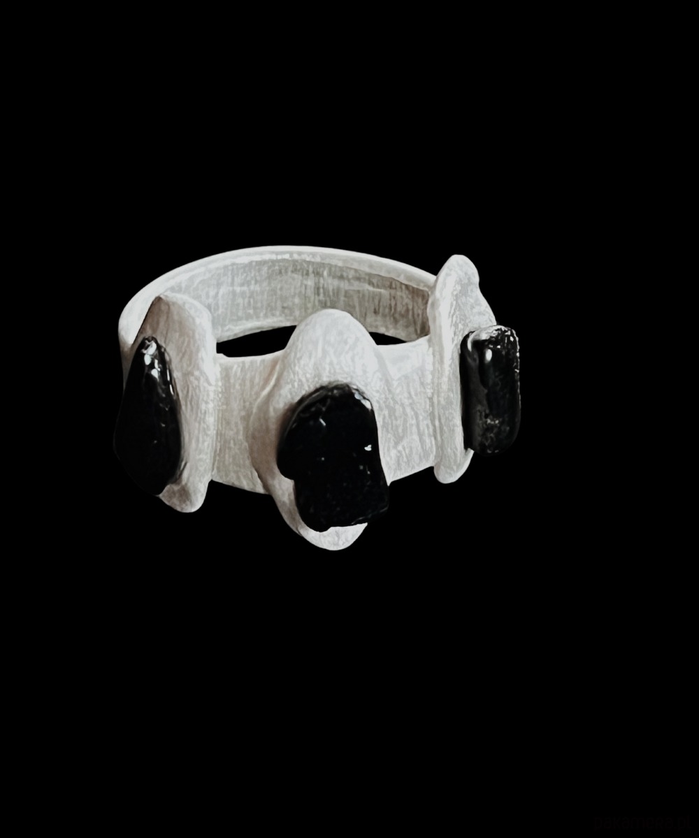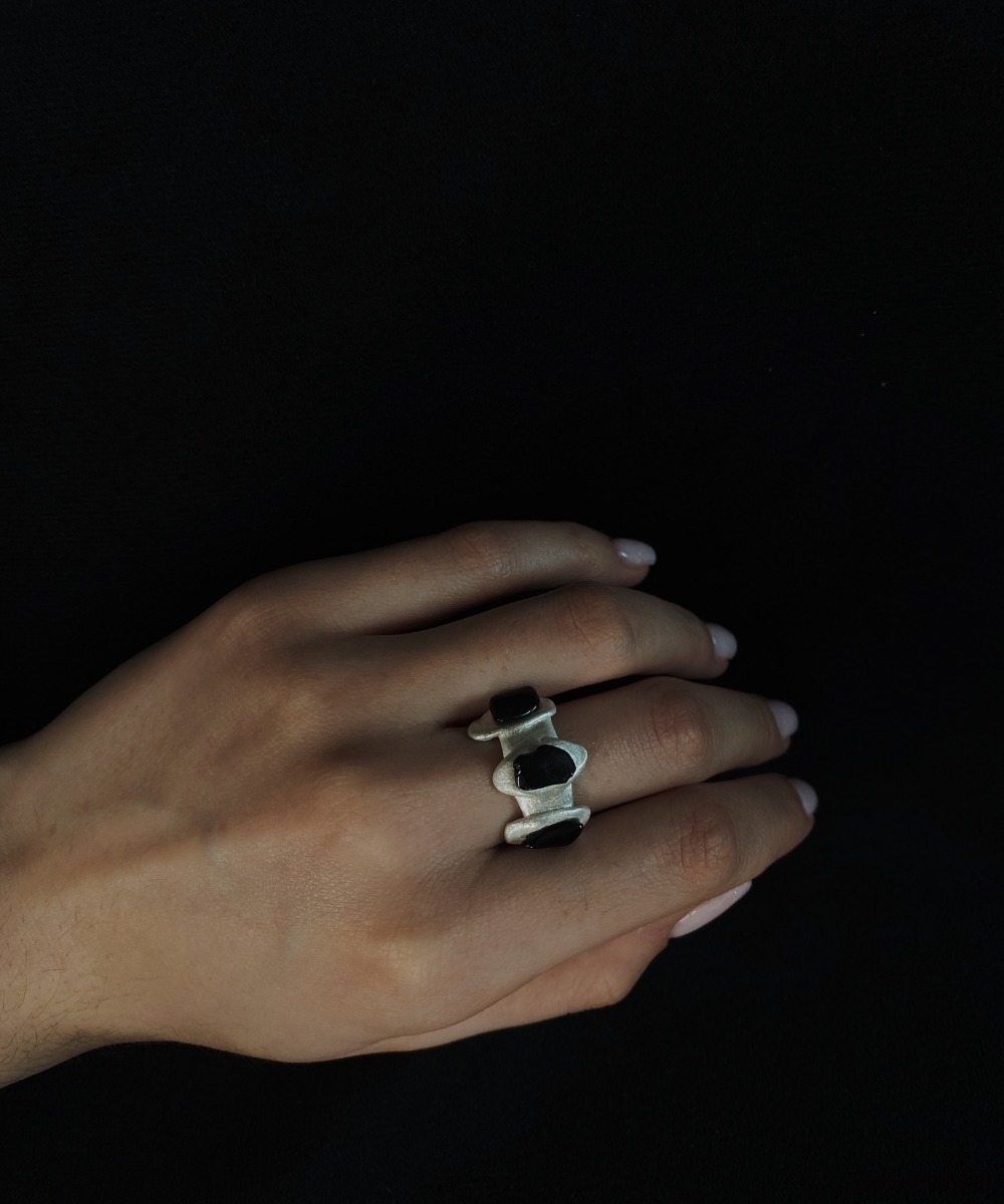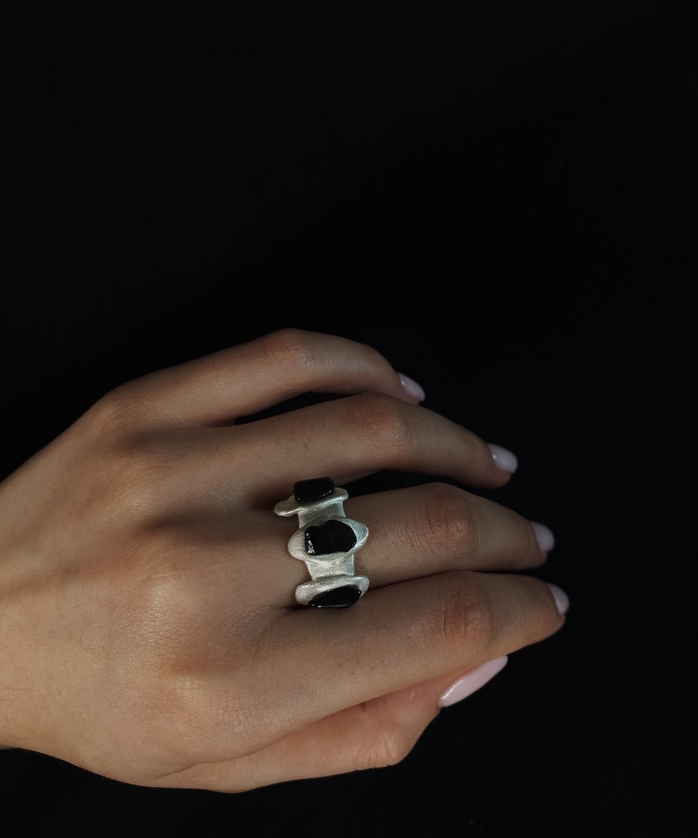 Ring made of the highest quality Art Clay Silver 999 with black tourmaline.