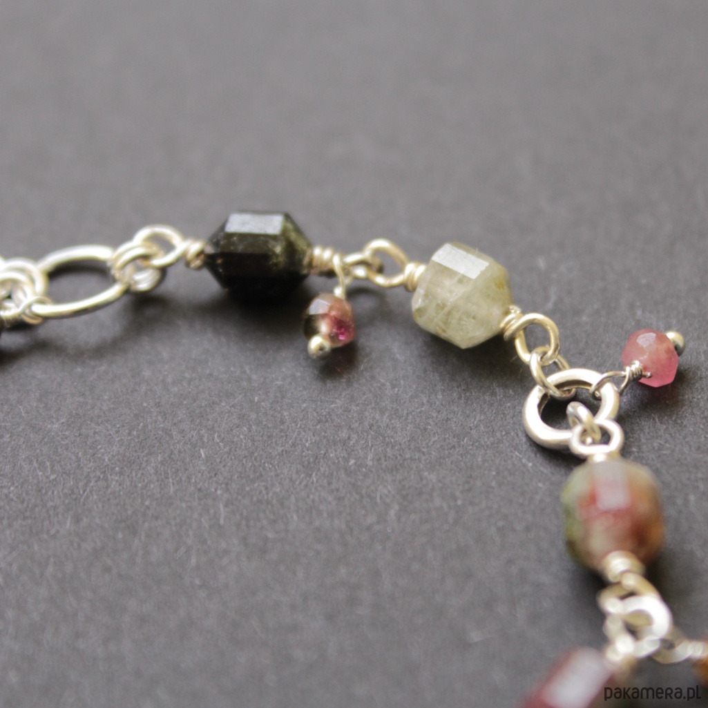 Każdy z turmalinów jest innej barwy, co dodaje bransoletce niezwykłości.