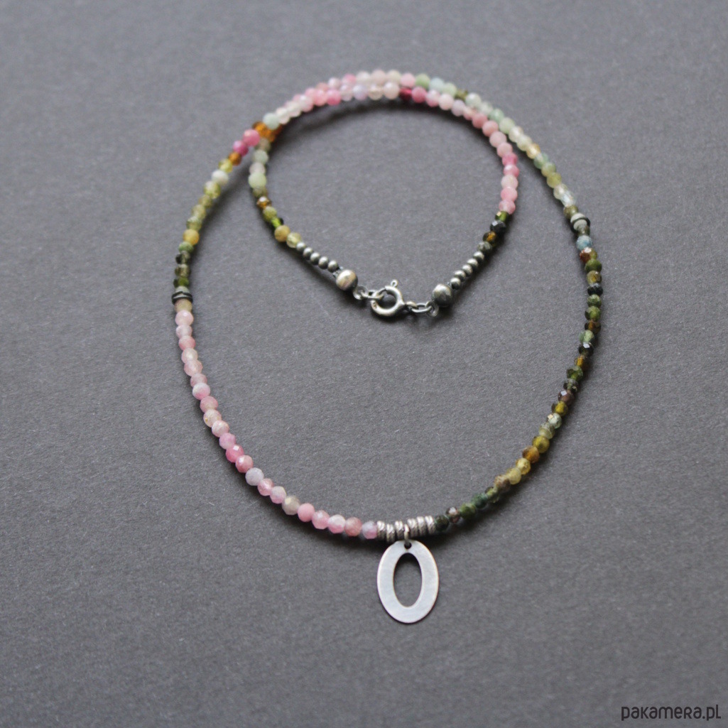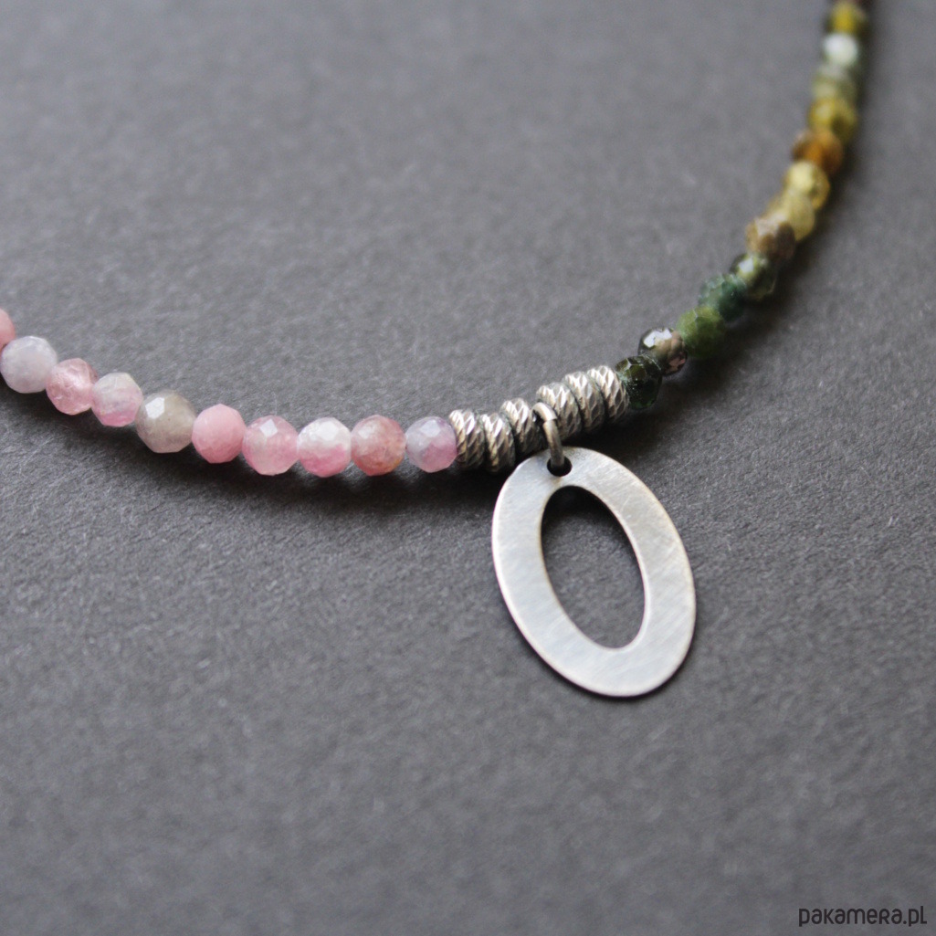 Naszyjnik został wykonany z oksydowanego srebra próby 925 oraz przepięknych fasetowanych turmalinów wielkości 0,25 cm.