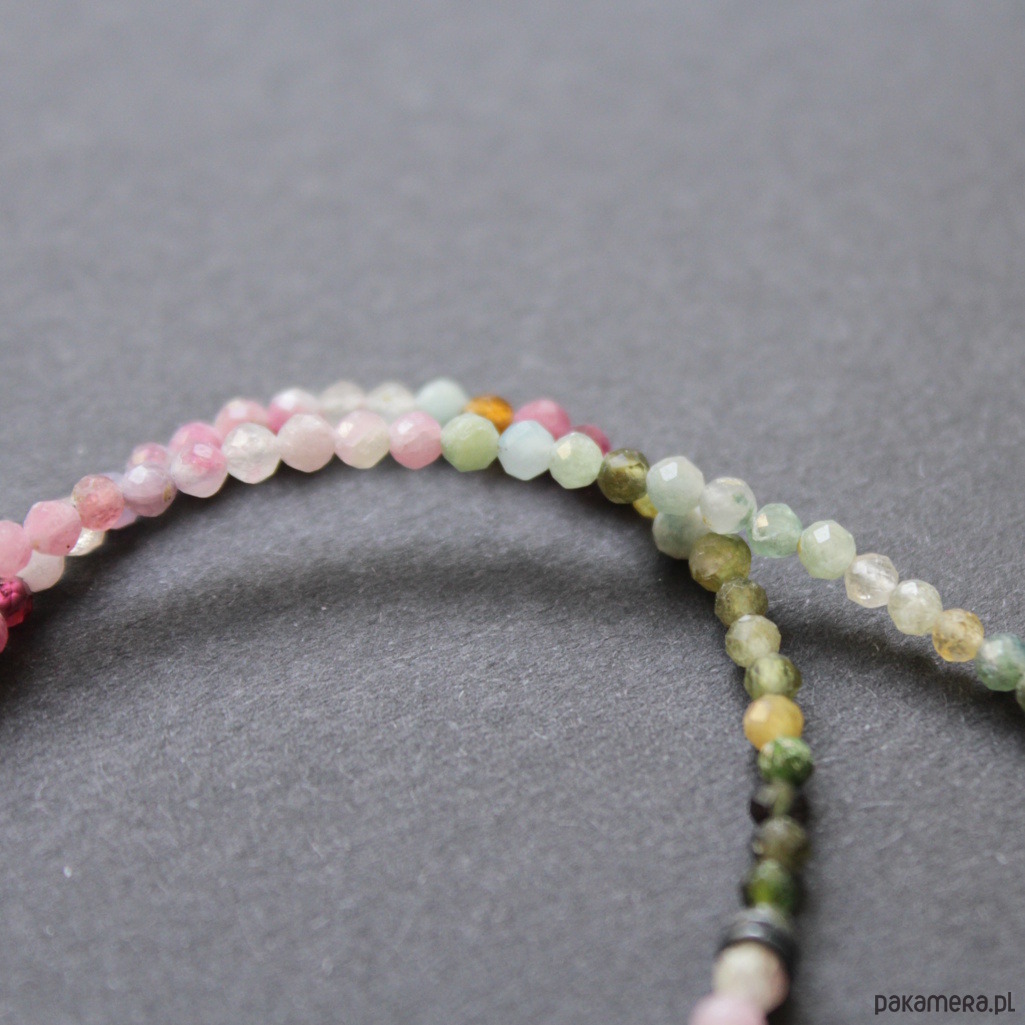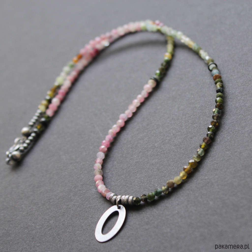 Naszyjnik został wykonany z oksydowanego srebra próby 925 oraz przepięknych fasetowanych turmalinów wielkości 0,25 cm.
