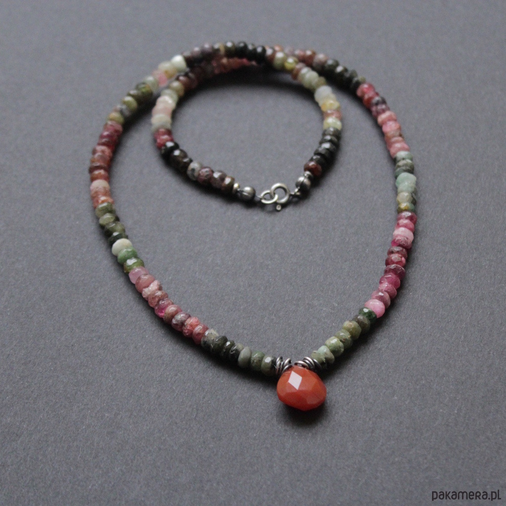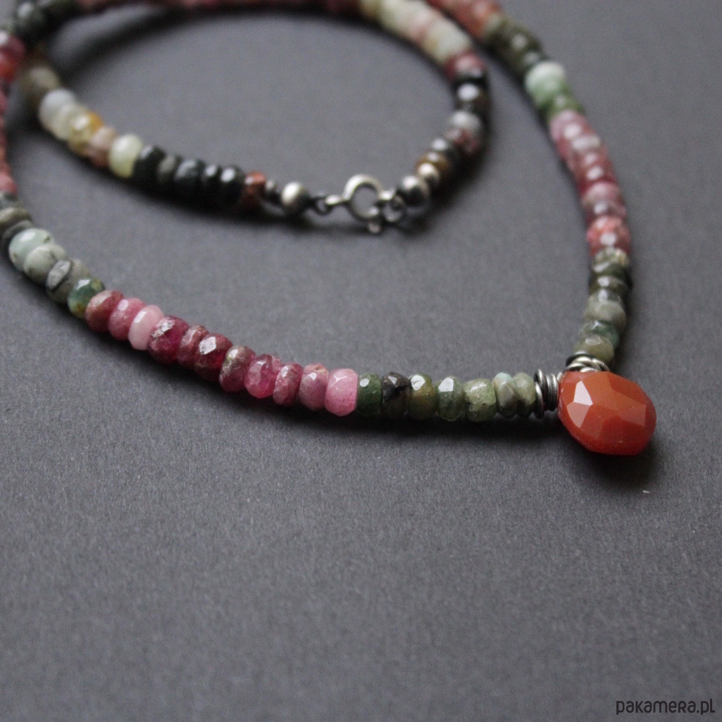 Naszyjnik został wykonany z oksydowanego srebra próby 925 oraz przepięknych fasetowanych oponek turmalinów wielkości 0,5 cm.
