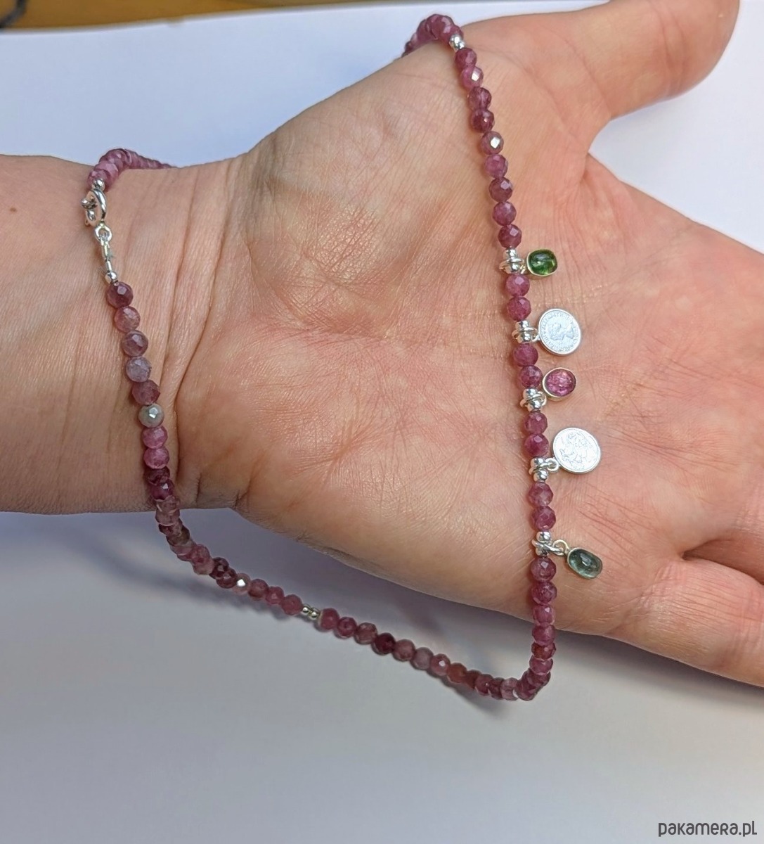 Turmaliny ze srebrnymi zawieszkami, naszyjnik