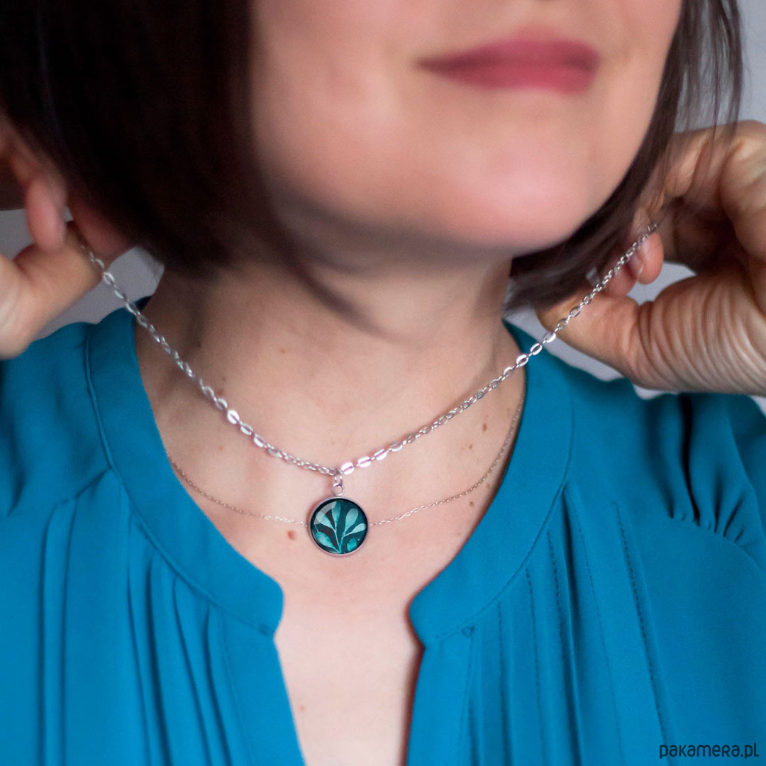Naszyjnik z medalionem, w którym umieszczona jest kolorowa, autorska ilustracja pod szkiełkiem to elegancki i kobiecy dodatek, który idealnie wpisuje się w duch stylu casual.