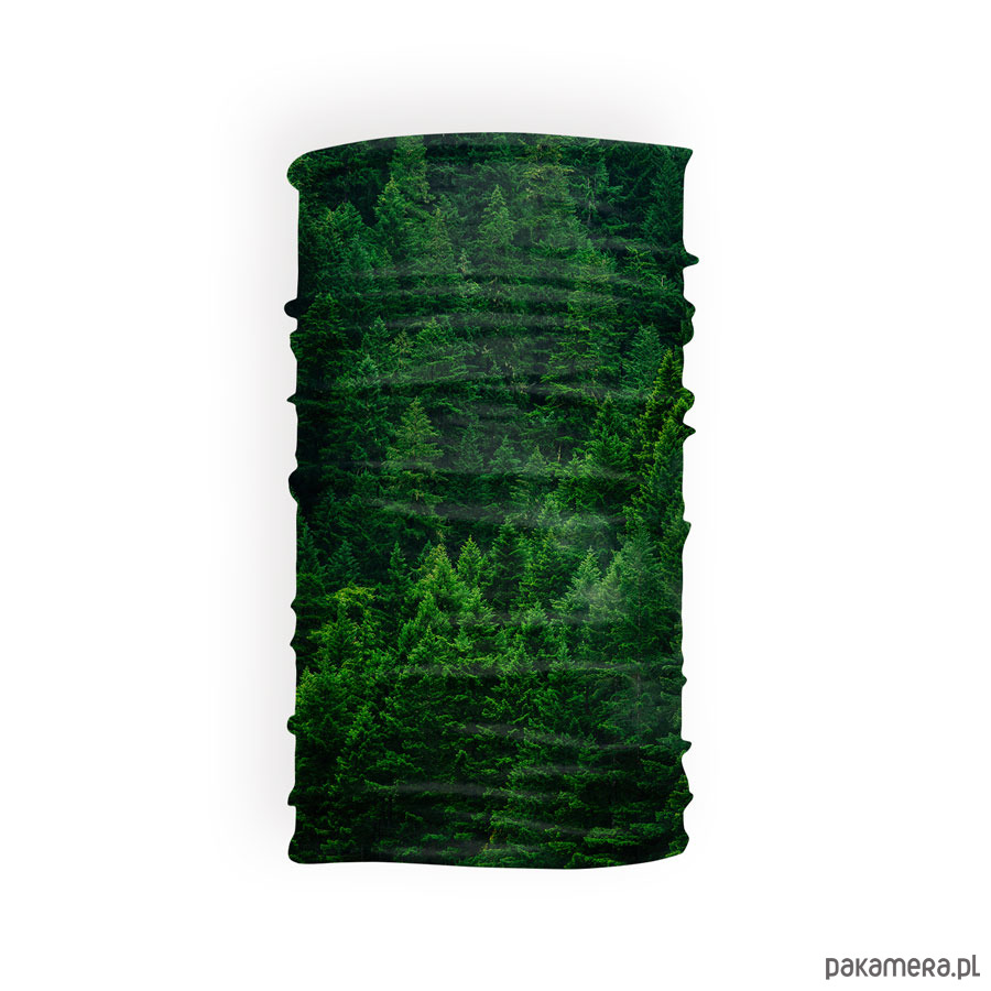 Kominy turystyczne Szwendam się mają uniwersalny rozmiar, dlatego będą pasowały na większość dorosłych osób. Posiadają jeden szew boczny, nie powoduje on jednak obtarć i podrażnień, gdyż jest to szew płaski (sportowy). Nasze chusty wielofunkcyjne wyróżniają oryginalne i dopracowane nadruki wykonane techniką sublimacji - są niewyczuwalne, niespieralne i realistyczne. W tym przypadku, nadruk przedstawia gęsty i soczyście zielony las iglasty.