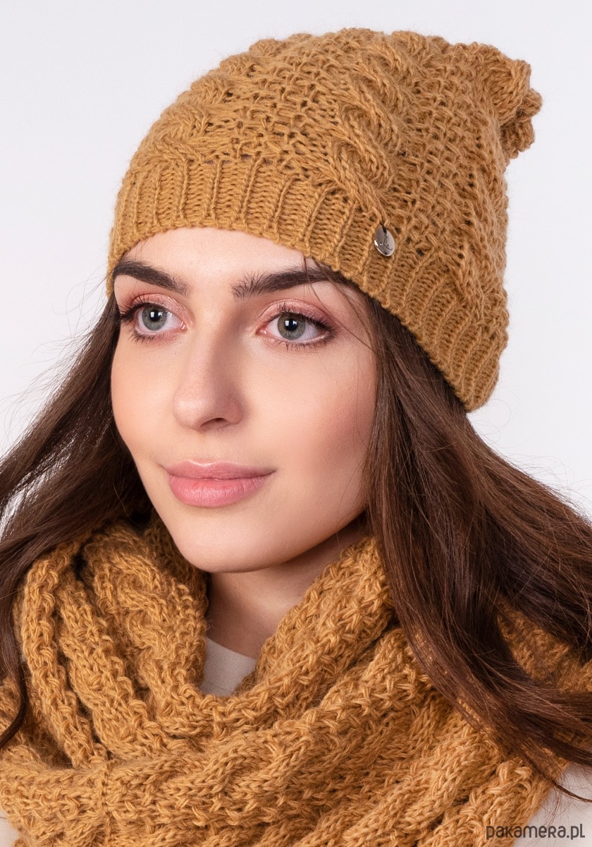 Twarzowa czapka w warkoczowy wzór - cappuccino