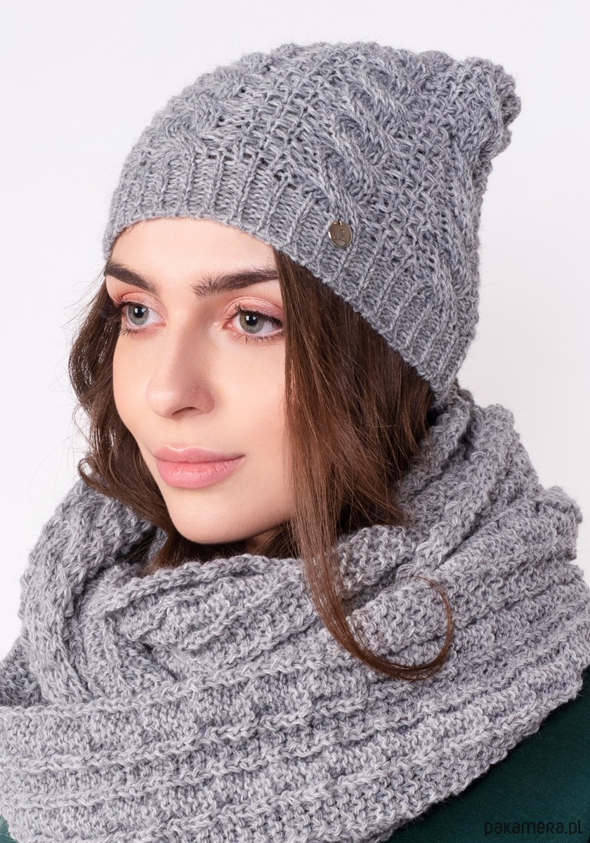 Twarzowa czapka w warkoczowy wzór - szara