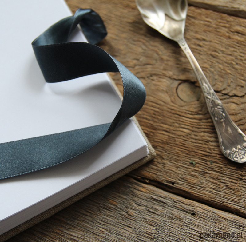 * kolor wstążki lub ewentualnie info o jej braku (mogę wykonać notes bez wstążki lub zamiast niej zrobić tasiemkową zakładkę)