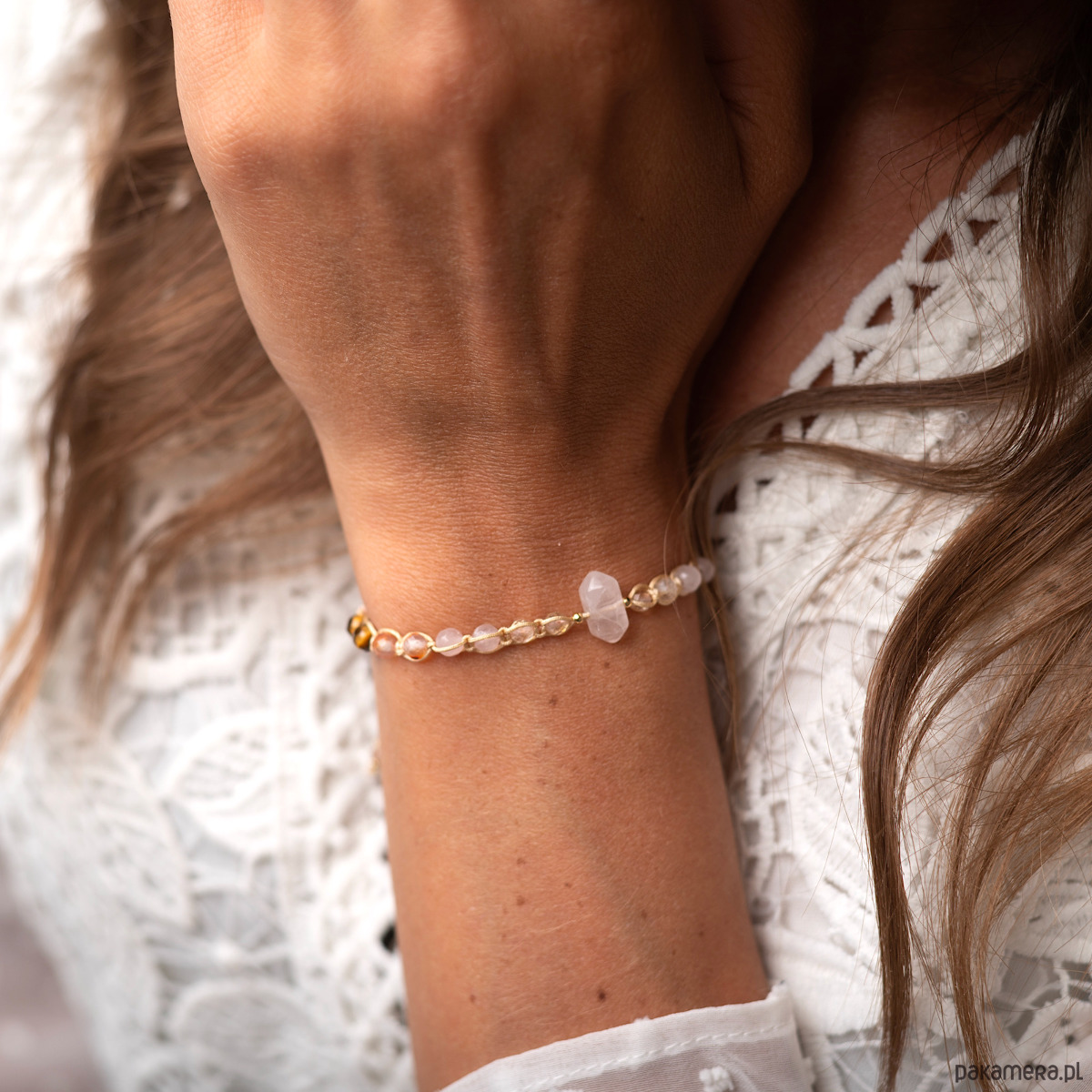 - Rodzaj kamienia: kwarc różowy, cytryn, agat, tygrysie oko