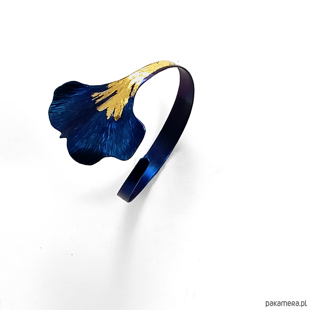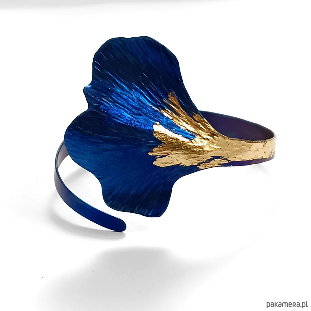 Bransoleta wykonana ręcznie z anodowanego tytanu. Szerokość ok. 4,5 cm a w obwodzie do ustalenia -regulacja.Jest wygodna i trwała. Opatrzona podpisem autora