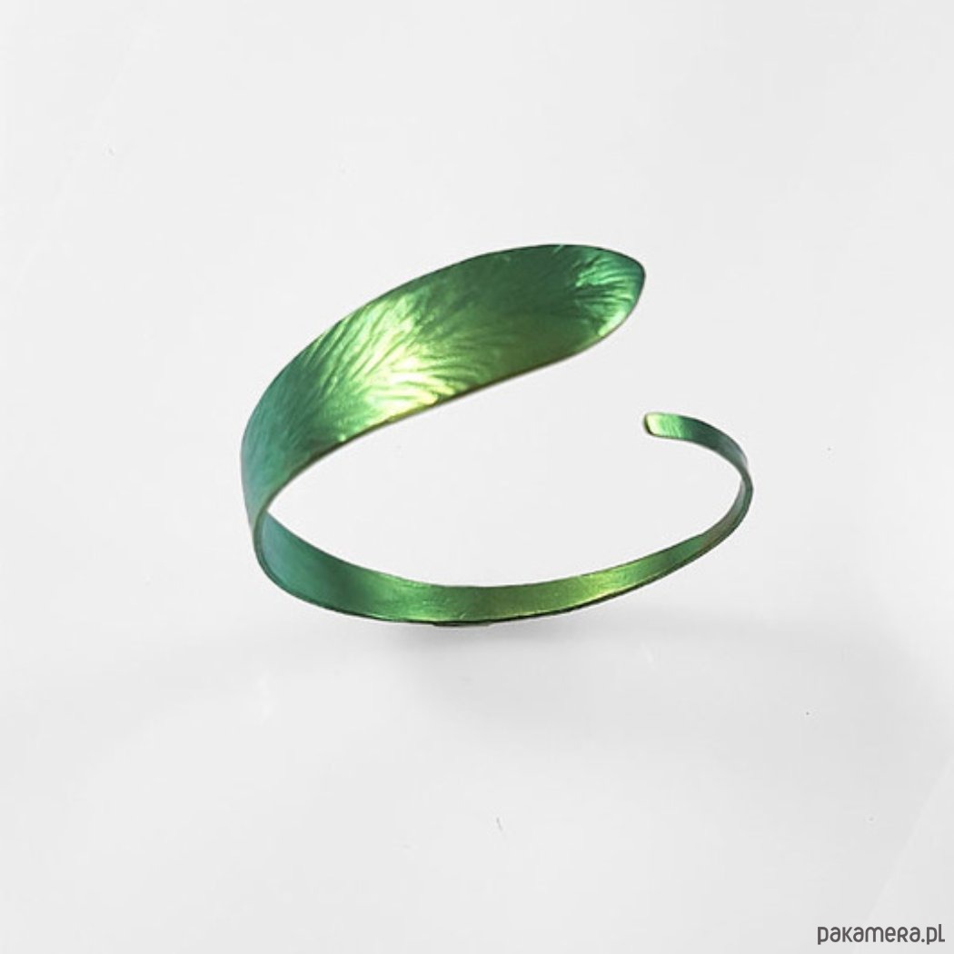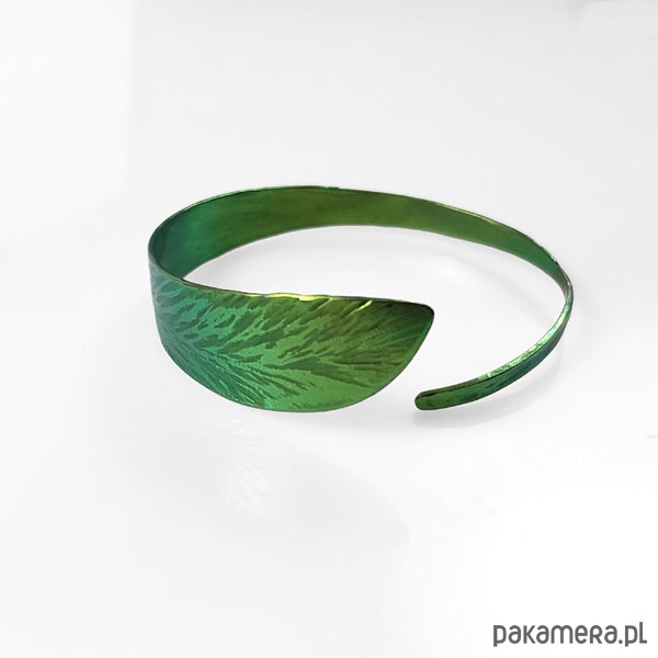 Bransoleta wykonana ręcznie z anodowanego tytanu. Szerokość 1,5 cm a w obwodzie 18 cm do dopasowania na nadgarstku ale mogę wykonać mniejszą lub większą.Jest wygodna i trwała. Opatrzona podpisem autora
