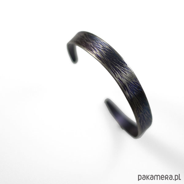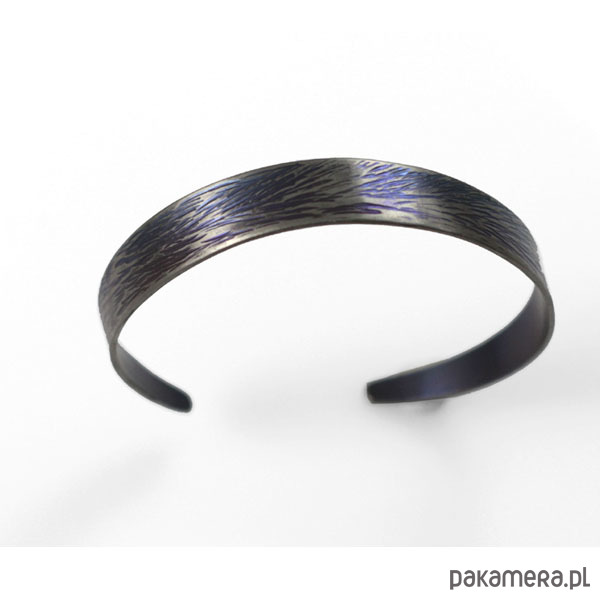 Bransoleta wykonana ręcznie z anodowanego tytanu. Szerokość 0,9 cm a w obwodzie 18,5 cm ale mogę wykonać mniejszą lub większą.Jest wygodna i trwała. Opatrzona podpisem autora