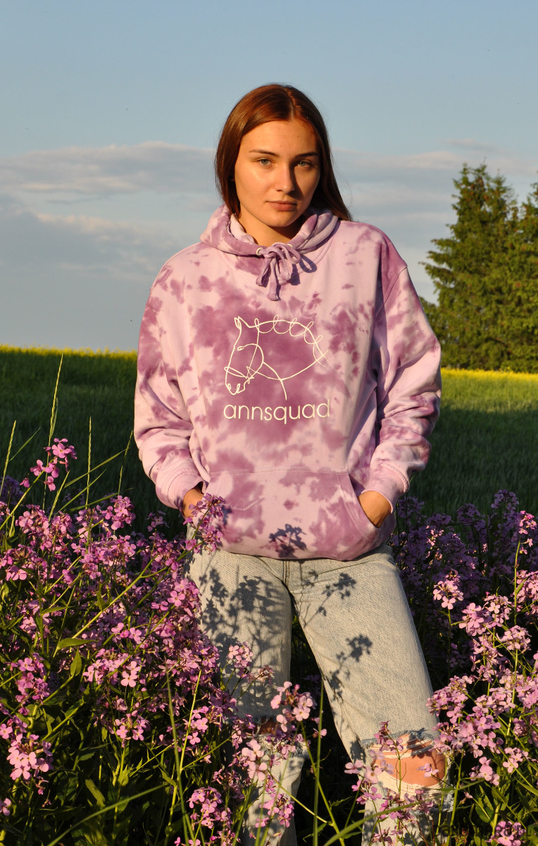 Bluza została pofarbowana autorską metodą opracowaną przez zespół AnnSquad na potrzeby produkcji bluz tiedye. Farbowanie jest trwałe, a kolor nie blednie. Nasze bluzy farbujemy ręcznie i należy pamiętać, że układ zafarbowanych miejsc nie będzie zawsze taki sam.