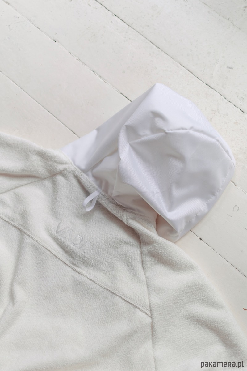 - a w tylnej zewnętrznej części pod kapturem mam też sprytny uchwyt do odwieszania poncza