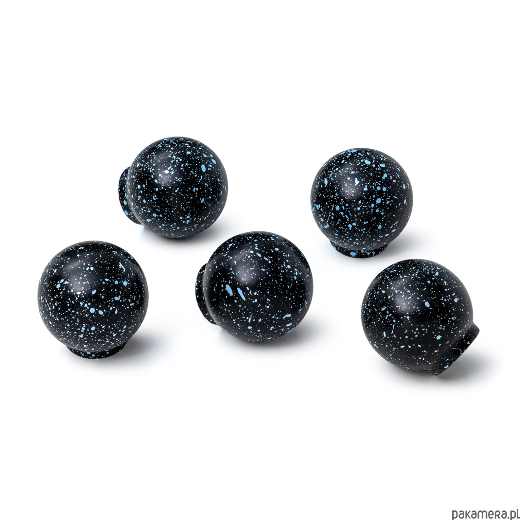 Gałka Ren z kolekcji Melange jest wariacją na temat chaosu, ale i harmonii. Na pierwszy rzut oka choć kompozycja kropek wydaje się chaotyczna to też pokrywając w pełni sferę kuli staję się harmonijnym jej wykończeniem. Kompozycja domknięta.