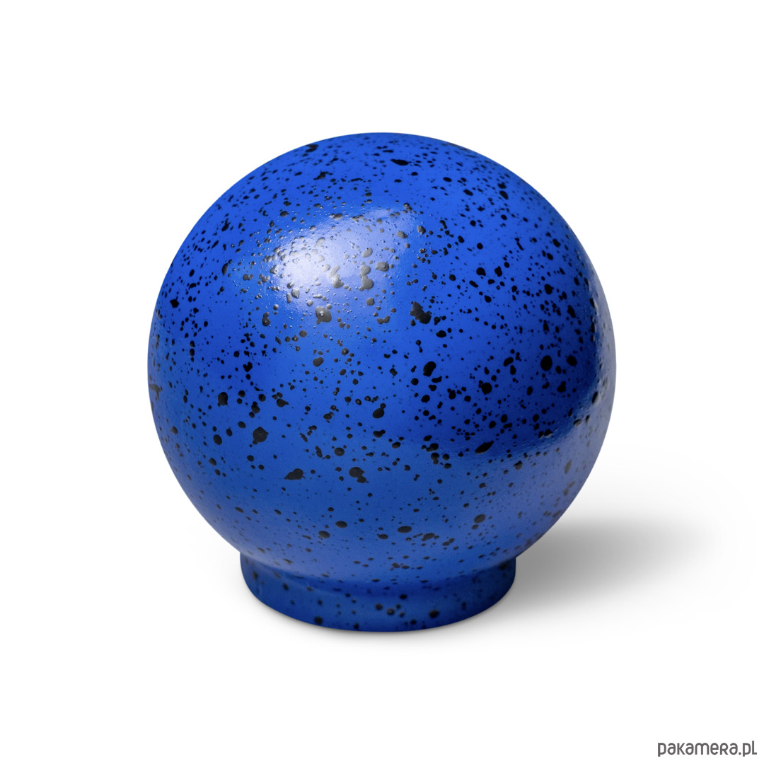 Gałka Ren z kolekcji Melange jest wariacją na temat chaosu, ale i harmonii. Na pierwszy rzut oka choć kompozycja kropek wydaje się chaotyczna to też pokrywając w pełni sferę kuli staję się harmonijnym jej wykończeniem. Kompozycja domknięta.