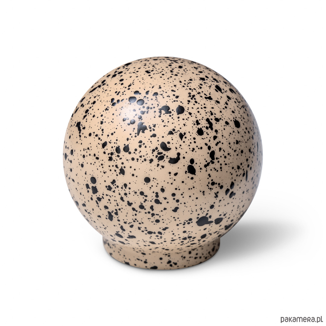 Gałka Ren z kolekcji Melange jest wariacją na temat chaosu, ale i harmonii. Na pierwszy rzut oka choć kompozycja kropek wydaje się chaotyczna to też pokrywając w pełni sferę kuli staję się harmonijnym jej wykończeniem. Kompozycja domknięta.