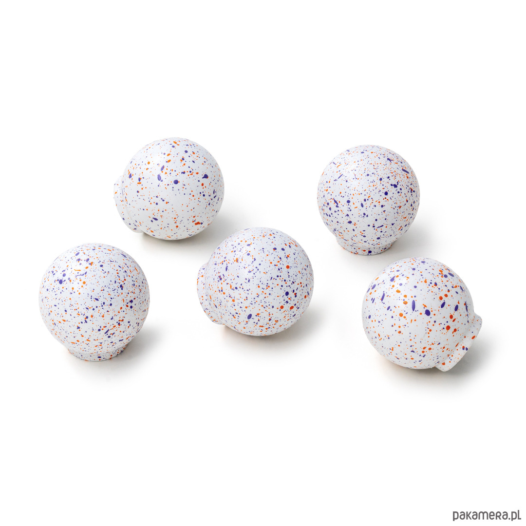 Gałka Ren z kolekcji Melange jest wariacją na temat chaosu, ale i harmonii. Na pierwszy rzut oka choć kompozycja kropek wydaje się chaotyczna to też pokrywając w pełni sferę kuli staję się harmonijnym jej wykończeniem. Kompozycja domknięta.