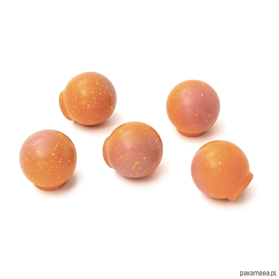 Gałka Ren z kolekcji Melange jest wariacją na temat chaosu, ale i harmonii. Na pierwszy rzut oka choć kompozycja kropek wydaje się chaotyczna to też pokrywając w pełni sferę kuli staję się harmonijnym jej wykończeniem. Kompozycja domknięta.