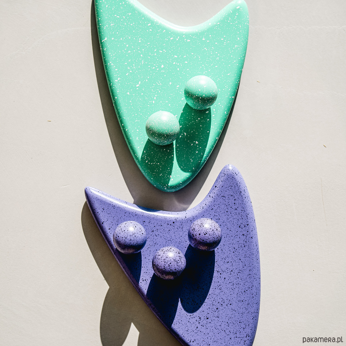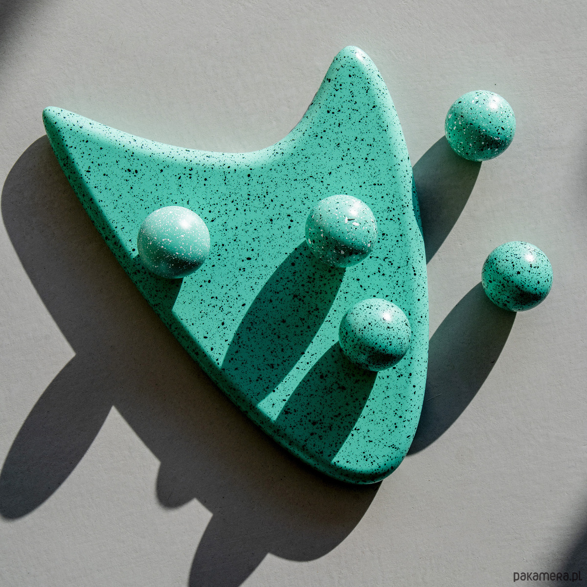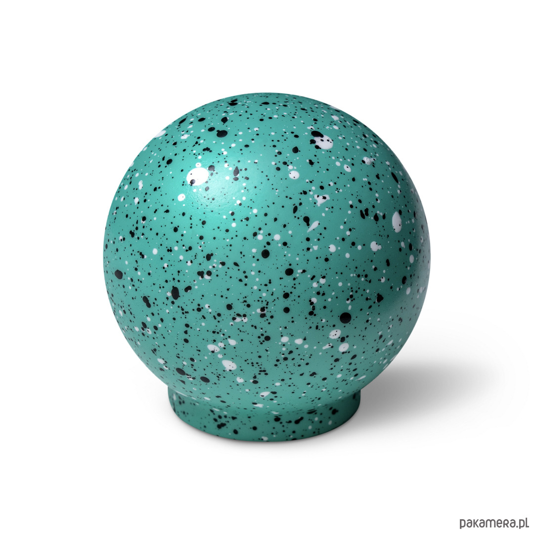 Gałka Ren z kolekcji Melange jest wariacją na temat chaosu, ale i harmonii. Na pierwszy rzut oka choć kompozycja kropek wydaje się chaotyczna to też pokrywając w pełni sferę kuli staję się harmonijnym jej wykończeniem. Kompozycja domknięta.