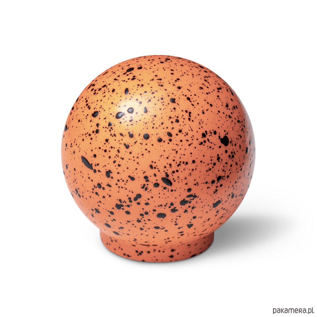 Gałka Ren z kolekcji Melange jest wariacją na temat chaosu, ale i harmonii. Na pierwszy rzut oka choć kompozycja kropek wydaje się chaotyczna to też pokrywając w pełni sferę kuli staję się harmonijnym jej wykończeniem. Kompozycja domknięta.
