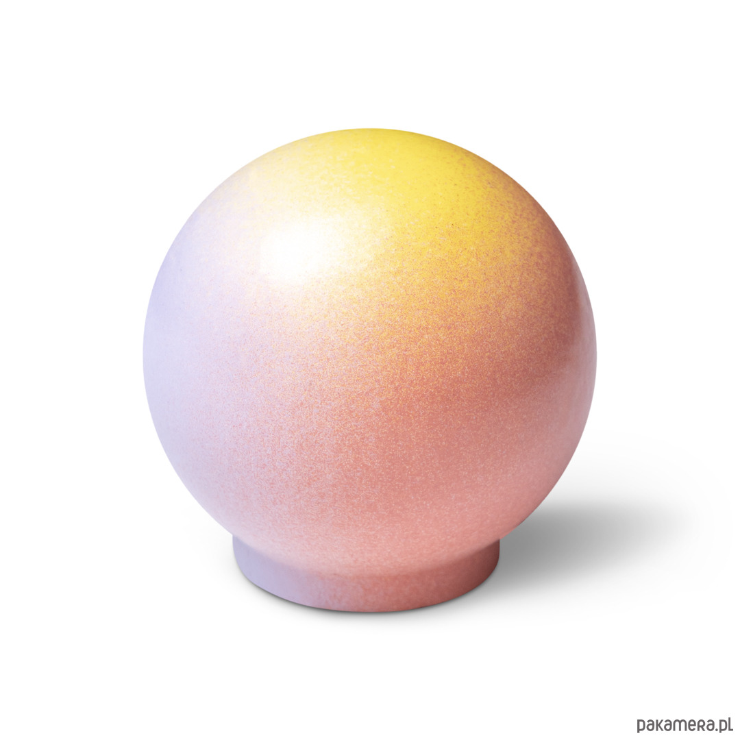 Gałka Ren z kolekcji Melange jest wariacją na temat chaosu, ale i harmonii. Na pierwszy rzut oka choć kompozycja kropek wydaje się chaotyczna to też pokrywając w pełni sferę kuli staję się harmonijnym jej wykończeniem. Kompozycja domknięta.