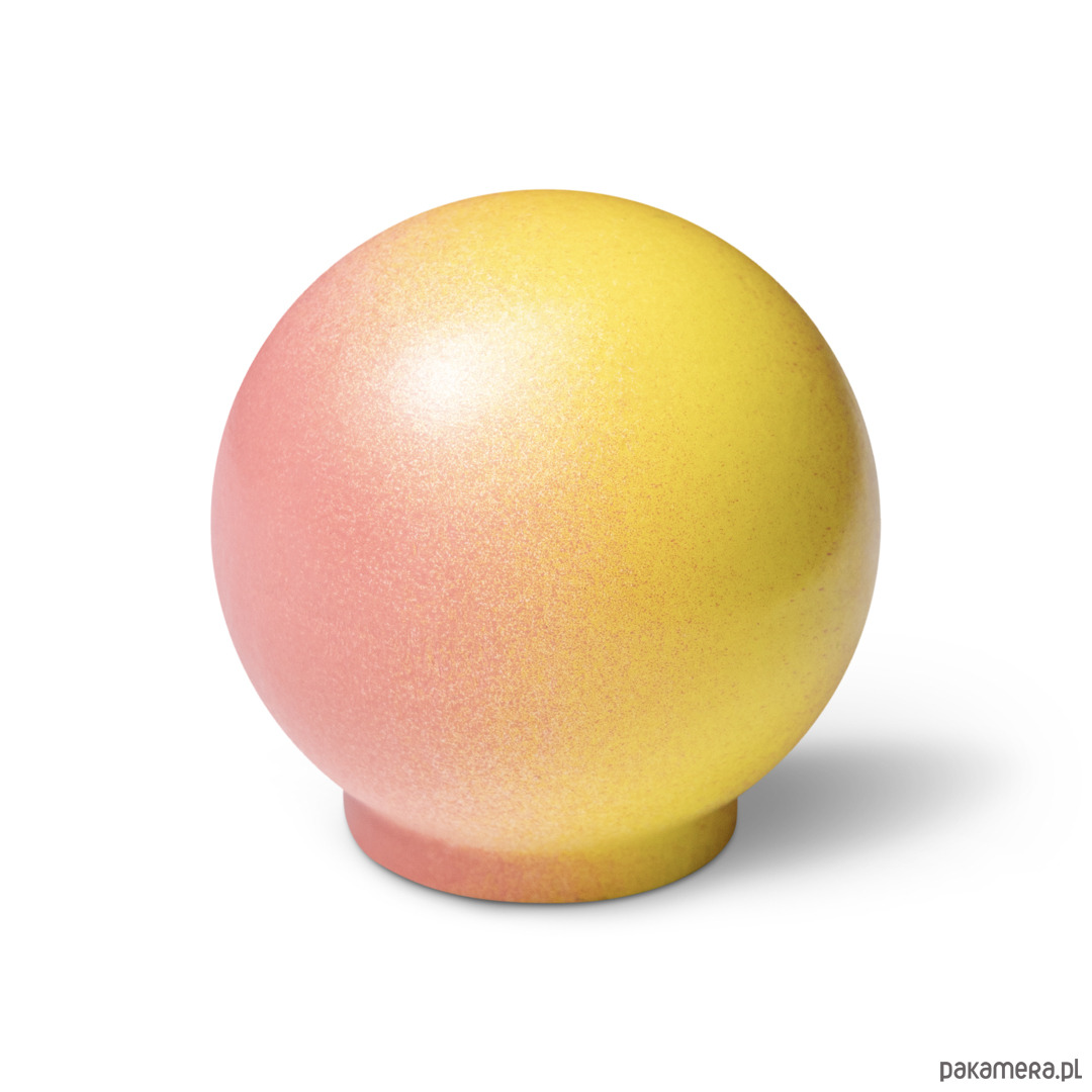 Gałka Ren z kolekcji Melange jest wariacją na temat chaosu, ale i harmonii. Na pierwszy rzut oka choć kompozycja kropek wydaje się chaotyczna to też pokrywając w pełni sferę kuli staję się harmonijnym jej wykończeniem. Kompozycja domknięta.
