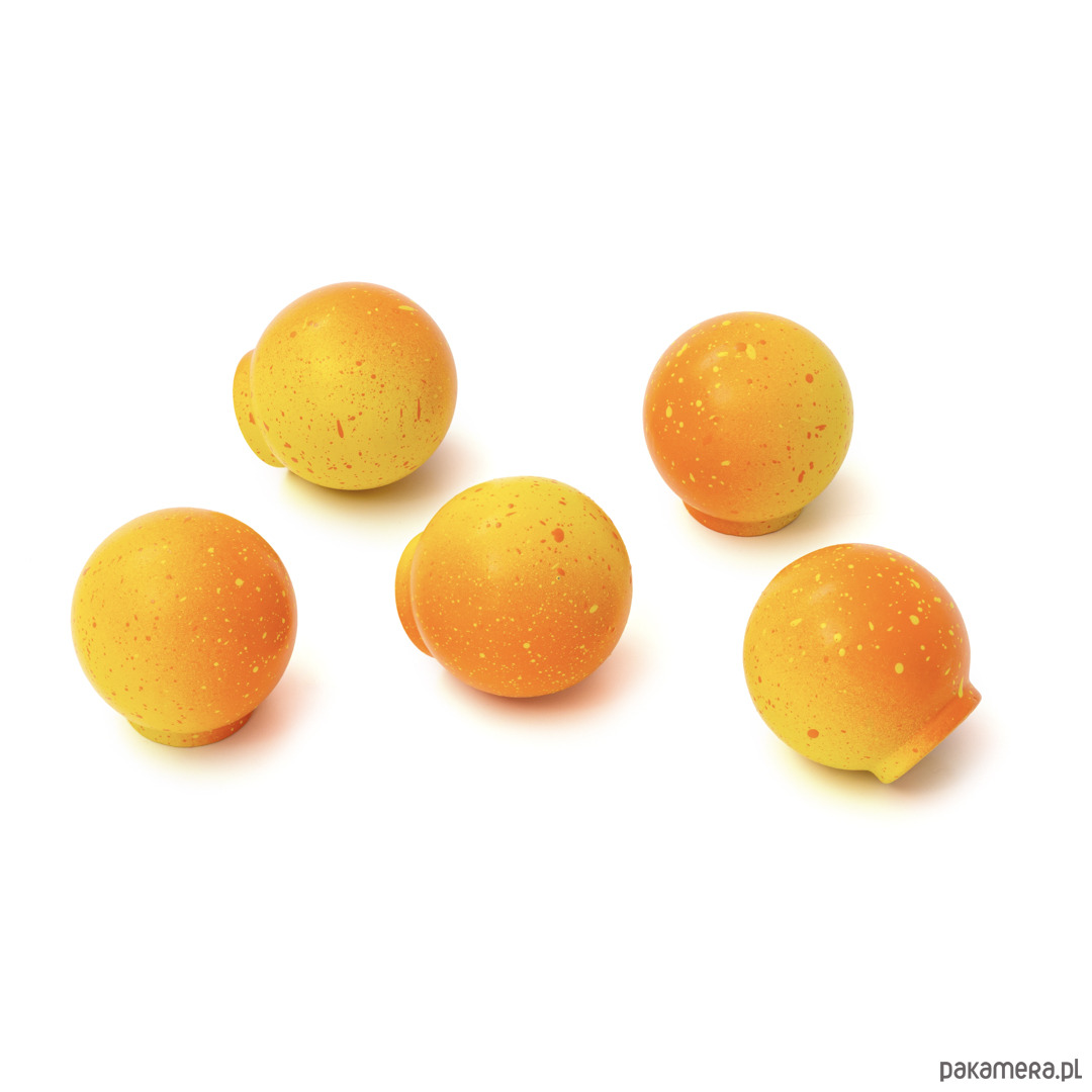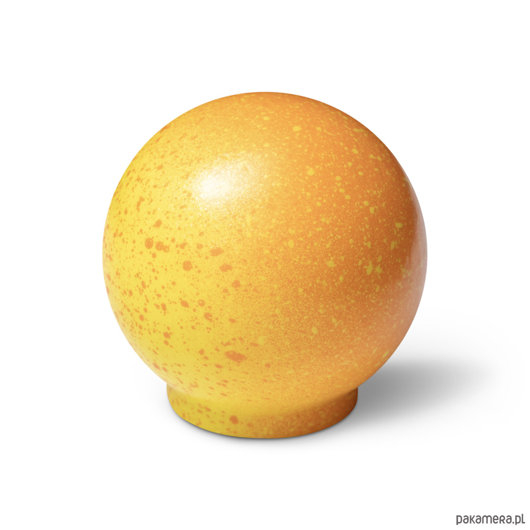 Gałka Ren z kolekcji Melange jest wariacją na temat chaosu, ale i harmonii. Na pierwszy rzut oka choć kompozycja kropek wydaje się chaotyczna to też pokrywając w pełni sferę kuli staję się harmonijnym jej wykończeniem. Kompozycja domknięta.