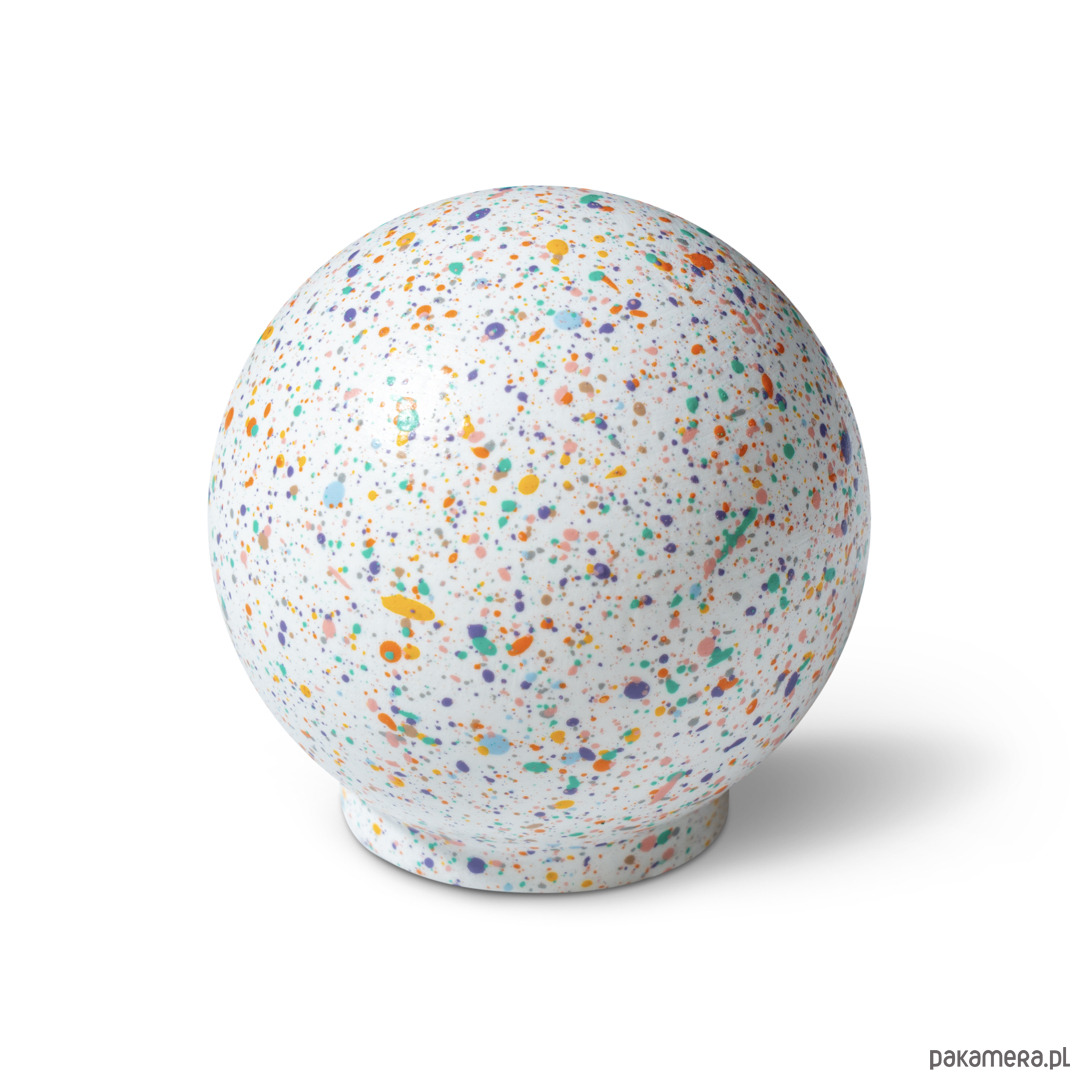 Super Melange to celebracja koloru w jego najczystszej, najbardziej radosnej postaci. Na białej bazie gałki – niczym na pustym płótnie – rozgrywa się dynamiczna kompozycja drobnych kropek w siedmiu jasnych kolorach charakterystycznych dla vince design. Każda z nich została naniesiona ręcznie w technice Melange, tworząc istną eksplozję barwnej energii.