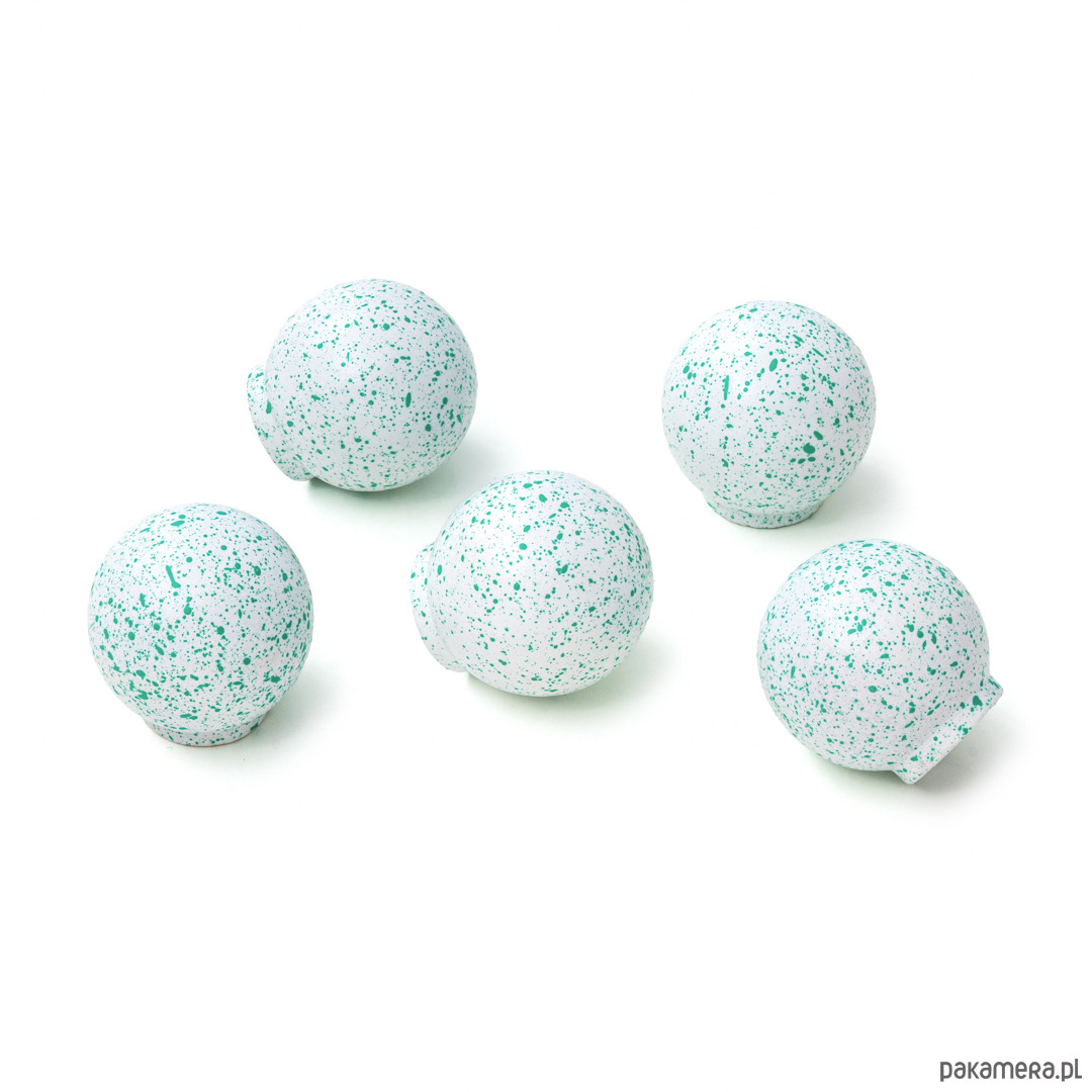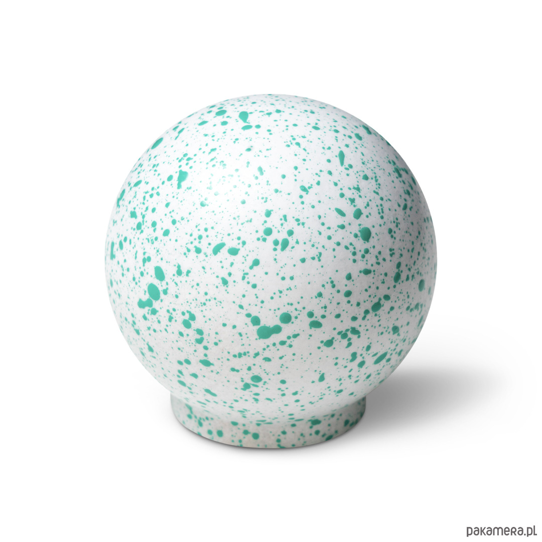 Gałka Ren z kolekcji Melange jest wariacją na temat chaosu, ale i harmonii. Na pierwszy rzut oka choć kompozycja kropek wydaje się chaotyczna to też pokrywając w pełni sferę kuli staję się harmonijnym jej wykończeniem. Kompozycja domknięta.