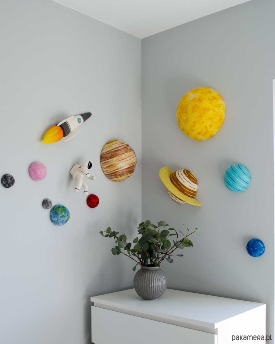 Układ słoneczny 3D z planetami i rakietą - dekoracja do pokoju i sali zabaw