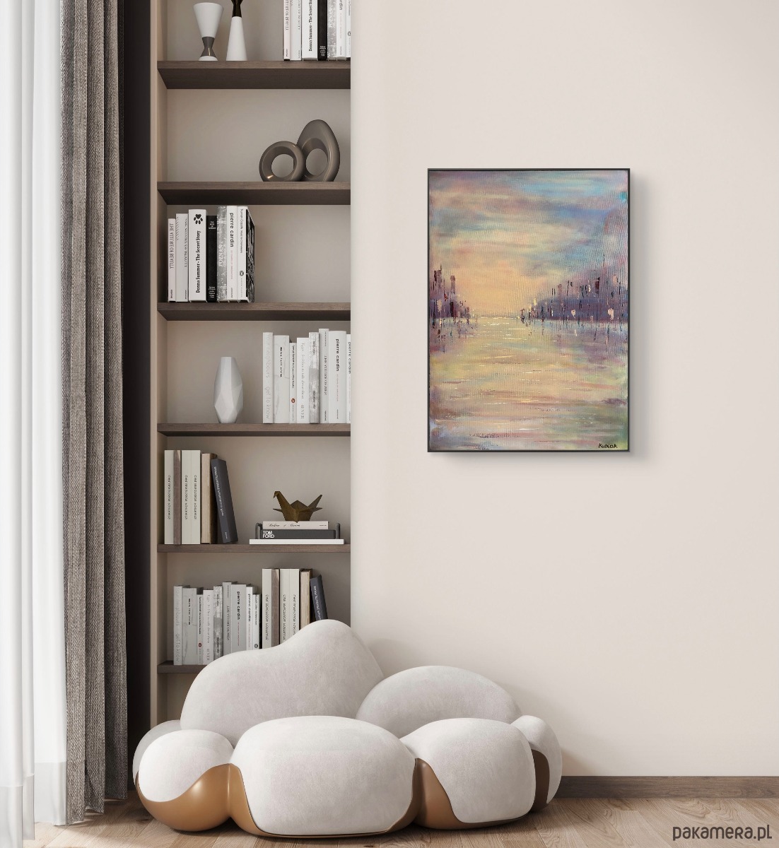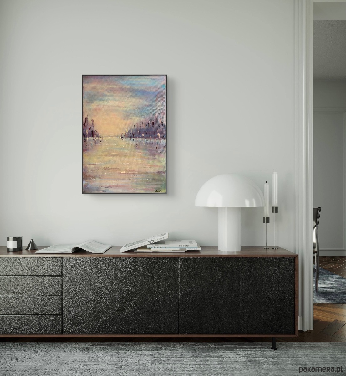 „Ulotność” to delikatny subtelny pejzaż, przenoszący w krainę łagodności. Oryginał.