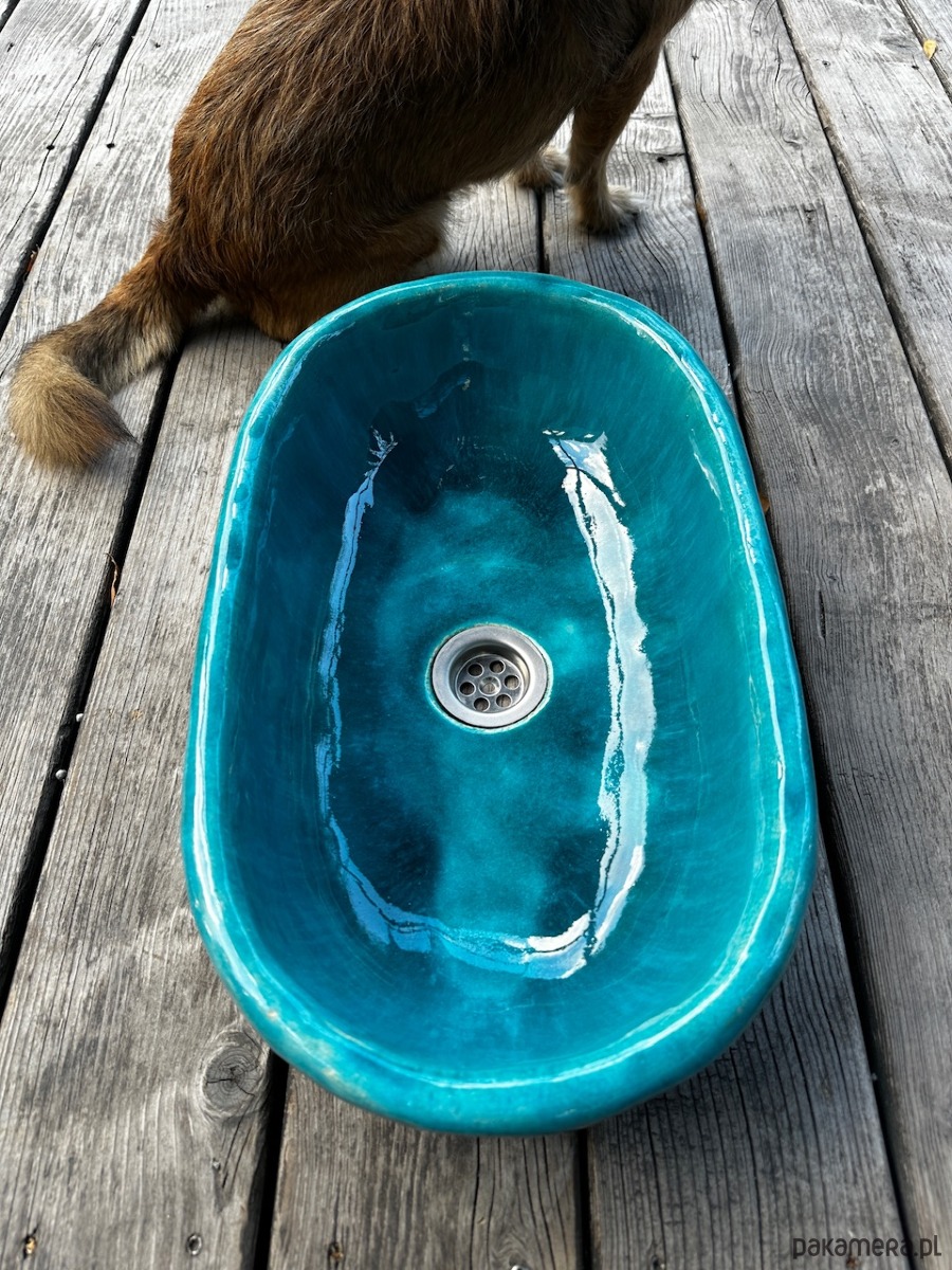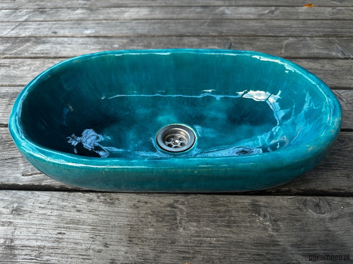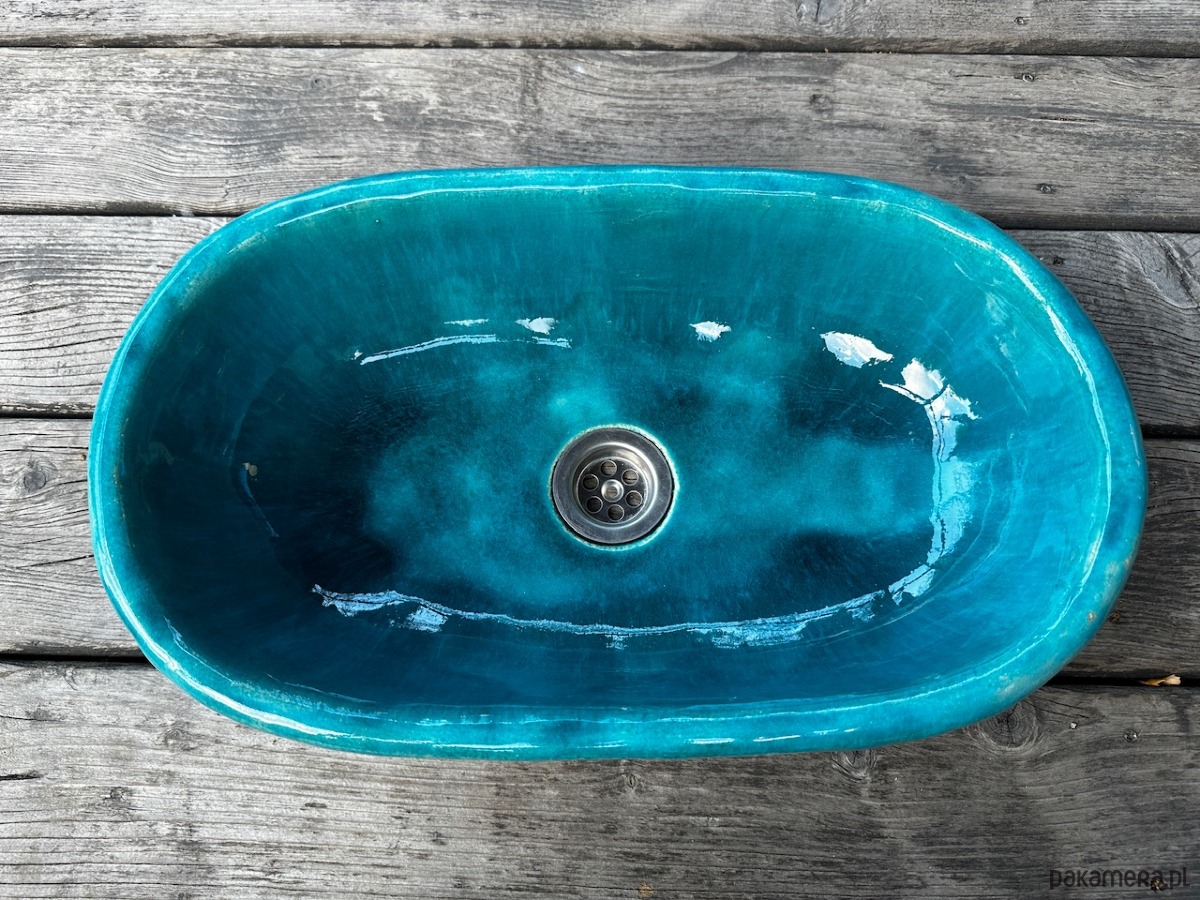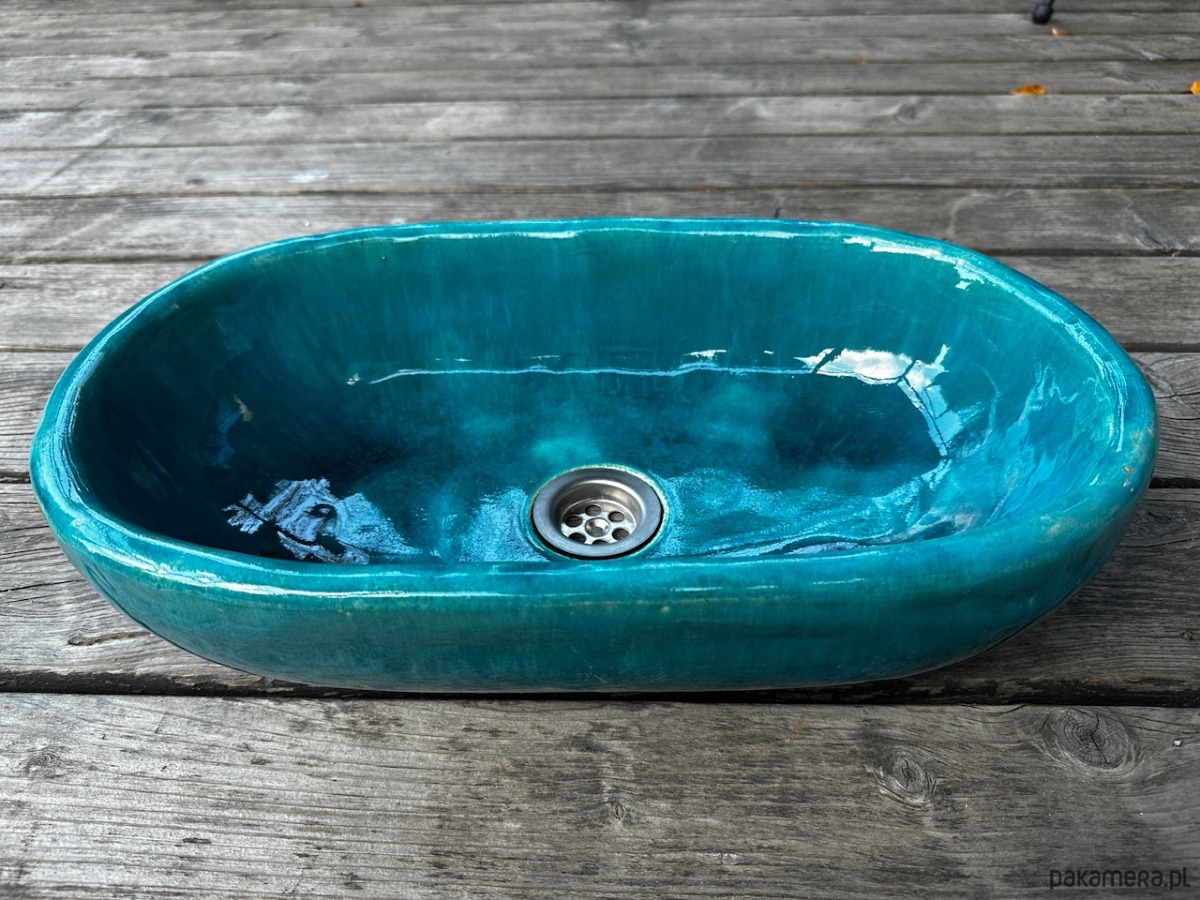 Umywalka ceramiczna, owalna. Kolor turkusowy.