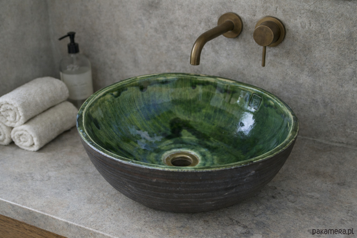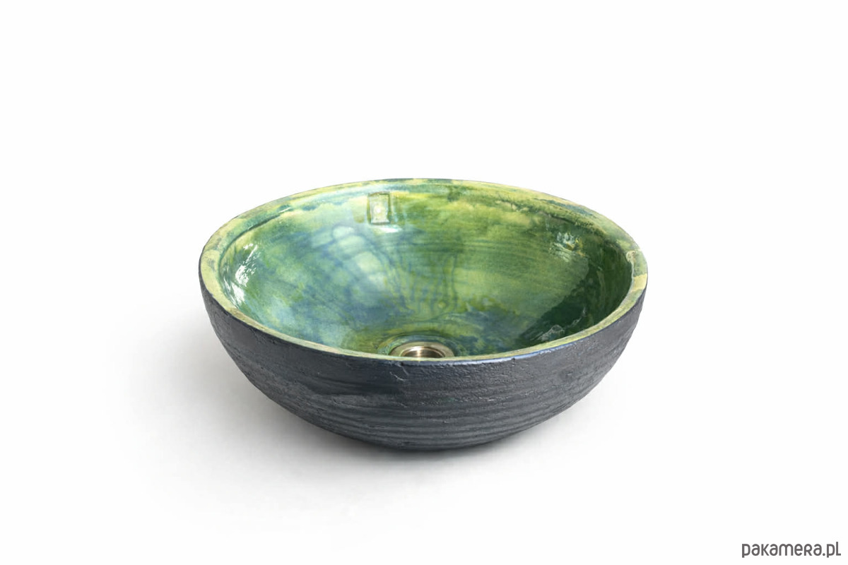 Umywalka Ceramiczna Nablatowa Ręcznie Robiona w Ciemnej Butelkowej Zieleni