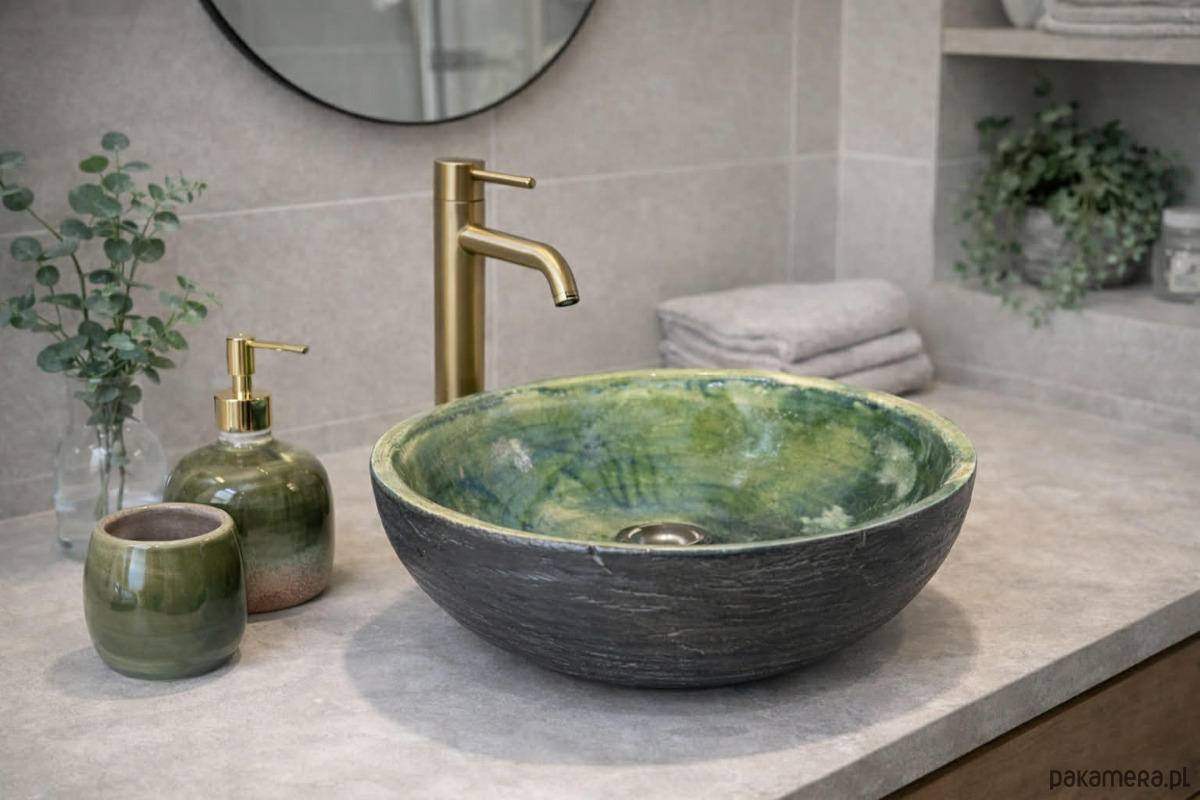 🔹 Malachitowa umywalka: Wysokiej jakości ceramika i ręczne wykonanie.