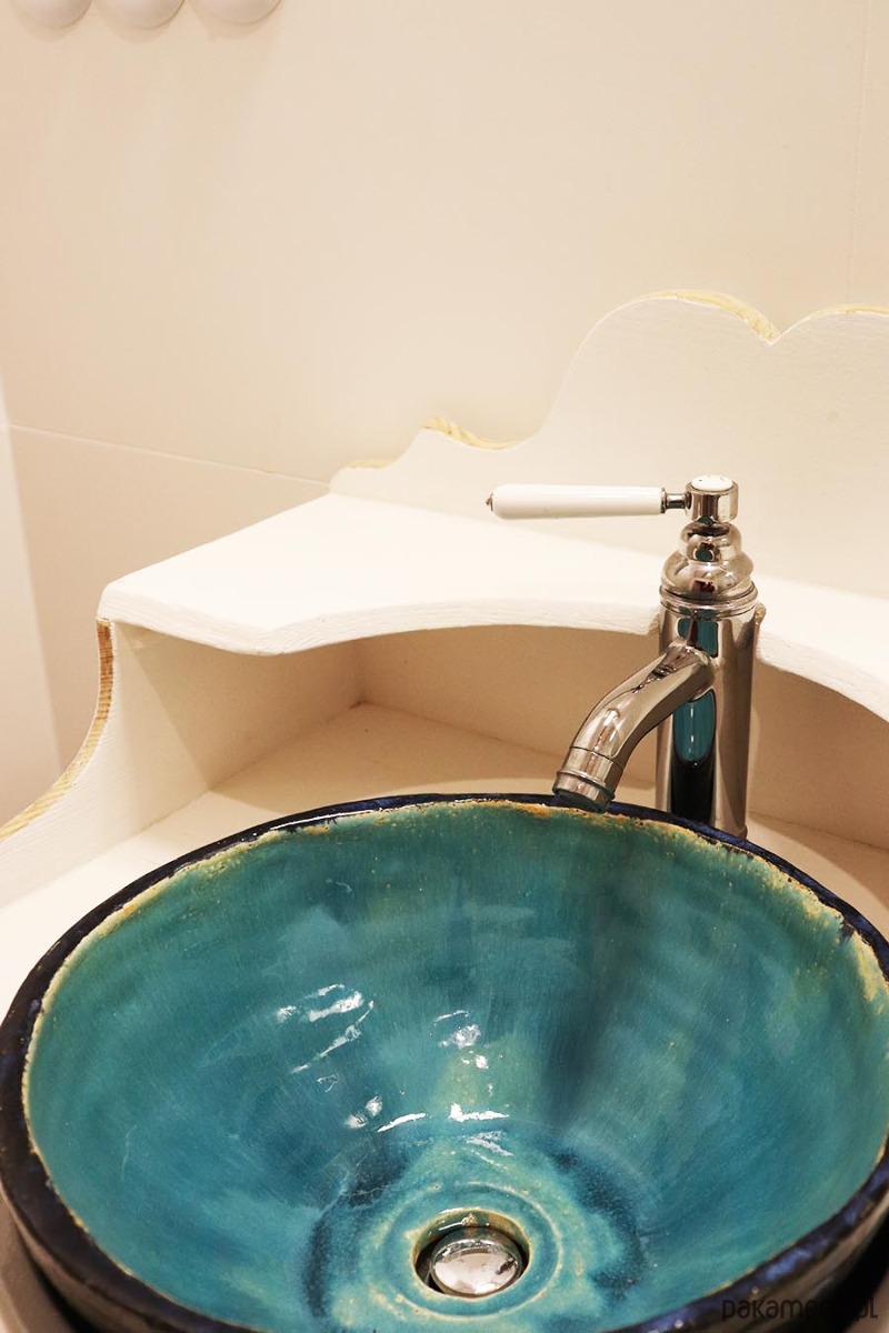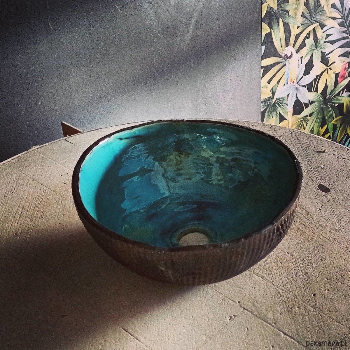 Umywalka ceramiczna, umywalka turkusowa, nablatowa, okragła