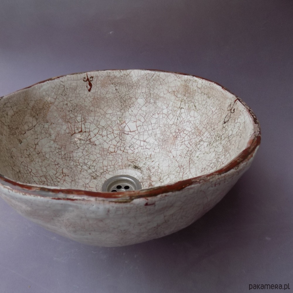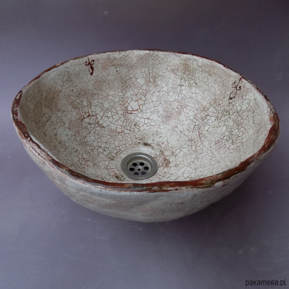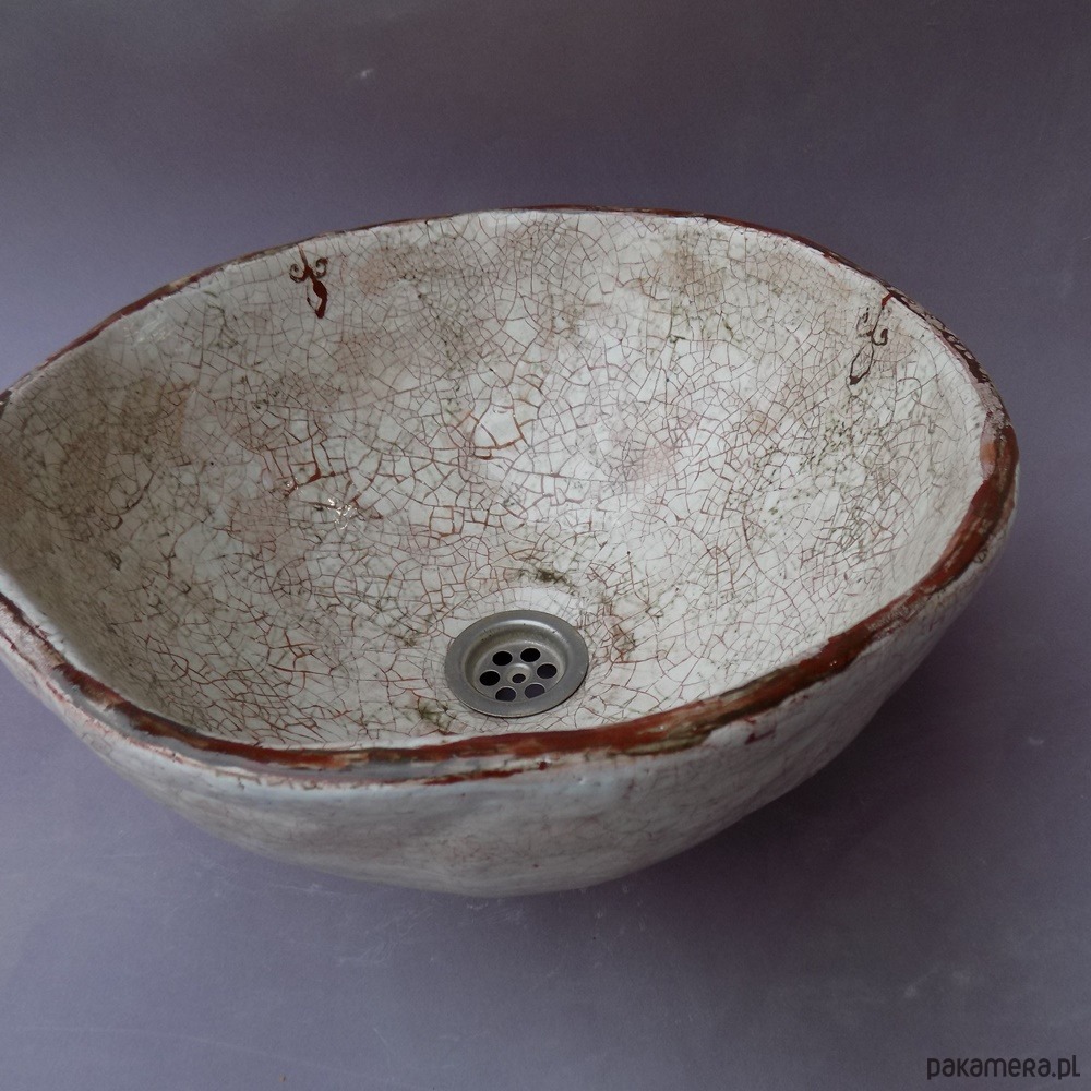 Umywalka ceramiczna, ręcznie formowana i szkliwiona, średnica umywalki to ok. 34 cm, wysokość ok. 17 cm, piękna, unikatowa i w pełni funkcjonalna, polecam.