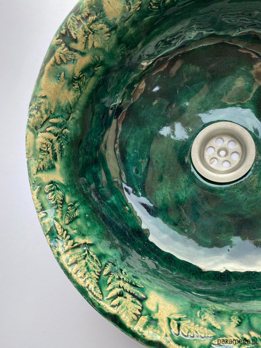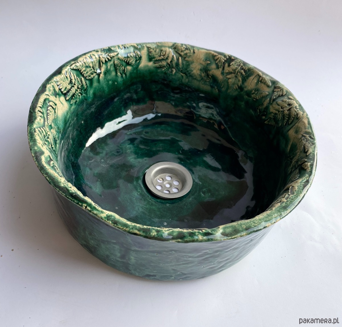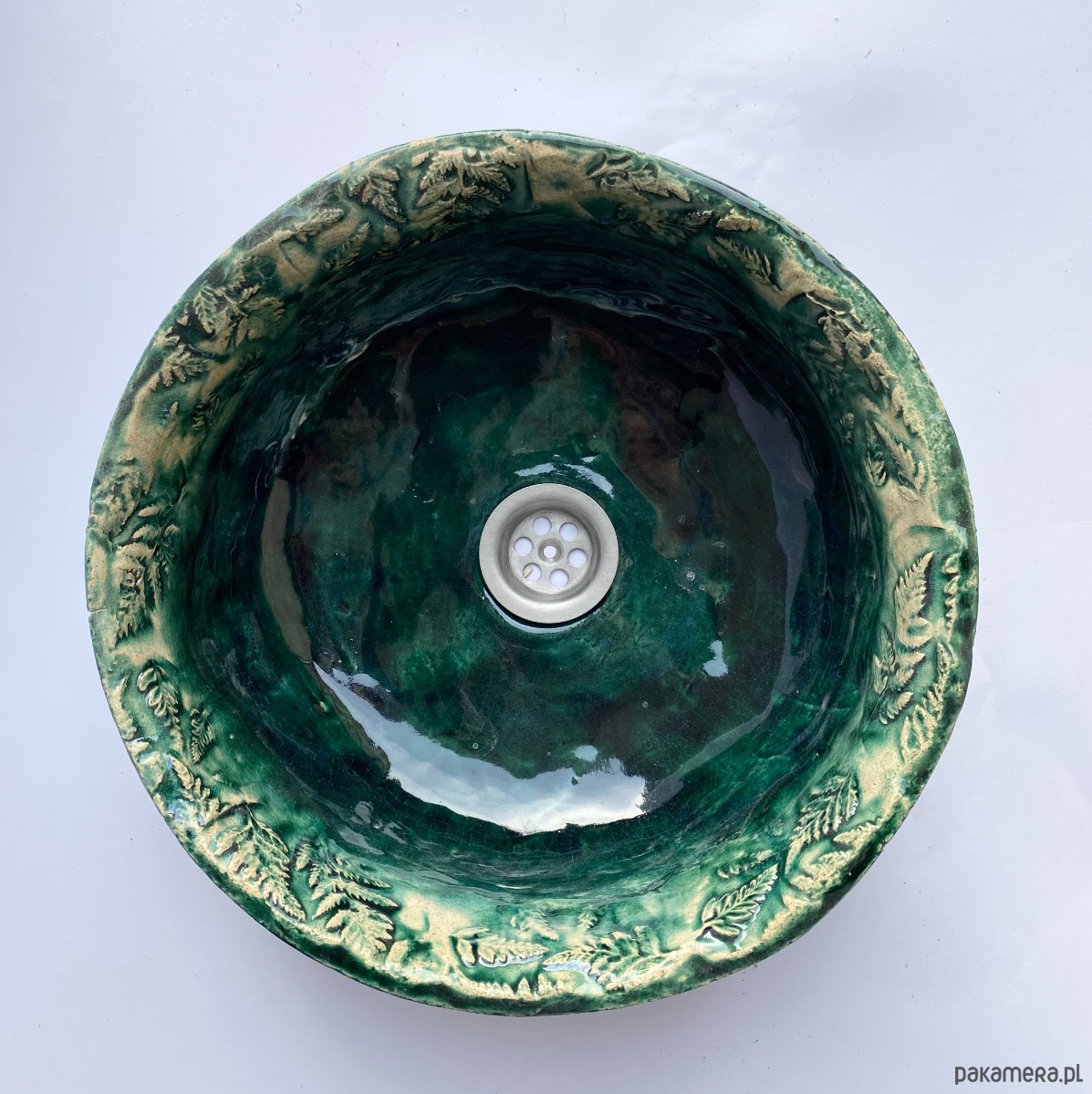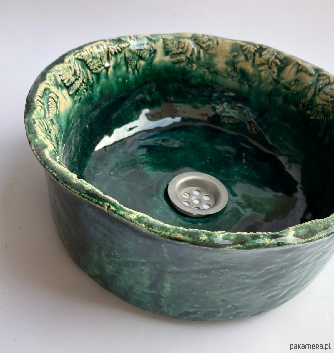 Umywalka ceramiczna, okrągła, nablatowa, ręcznie formowana i szkliwiona, średnica umywalki to 31 cm, wysokość 12 cm, polecam.
