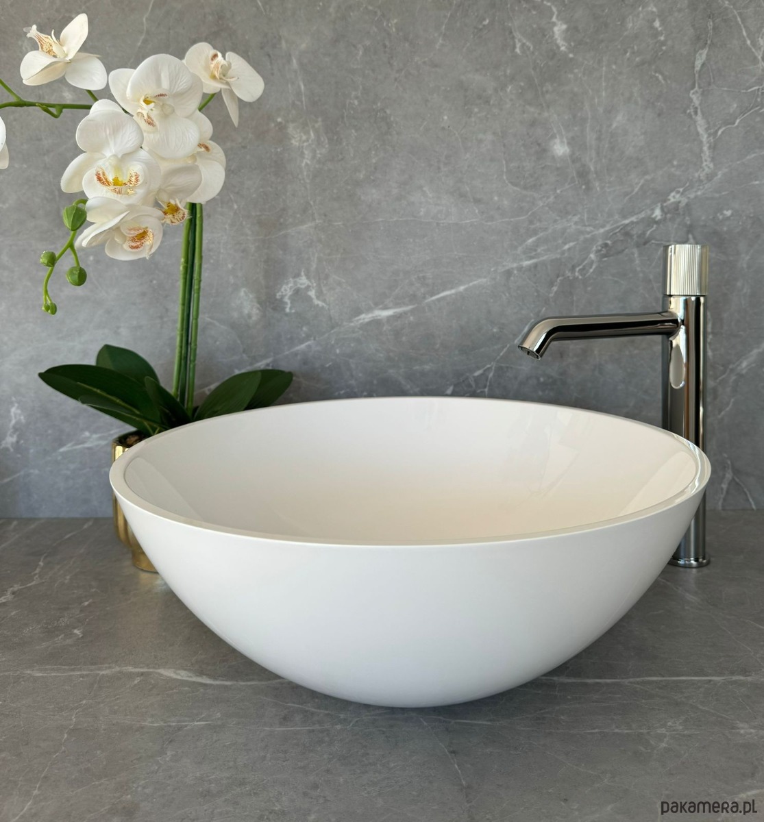 Umywalki nablatowe mogą przybierać różne kształty, wykończenia i a przede wszystkim kolory( cała paleta kolorów RAL)Dzięki temu postawione na blacie bardziej przykuwają uwagę niż typowe modele. Dlatego jeśli szukasz elementu, który wyróżni aranżację twojej łazienki, jeśli szukasz unikalnych ręcznie malowanych zdobień ,nasza kolorowa umywalka będzie idealnym wyborem, Będziesz zaskoczony, jak ciekawie może się prezentować.Gładkie, błyszczące wykończenie powierzchni to łatwość utrzymania w czystości oraz nieskazitelny wygląd każdego dnia. Wybierając ten model, możesz mieć pewność, że będzie Ci on służył przez długi czas.