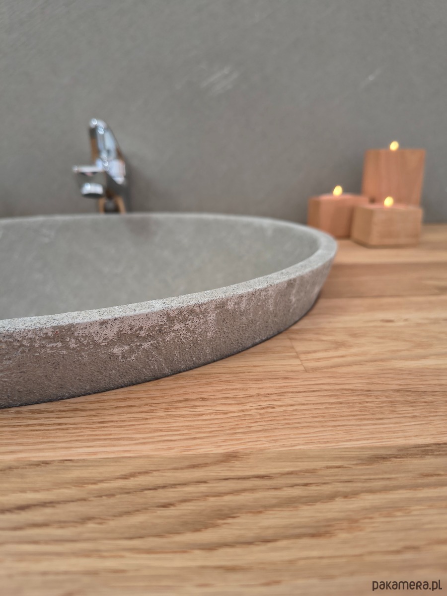 🔸 Umywalki podblatowe – nowoczesne, dyskretne, w strukturze betonu lub granitu, w dowolnym kolorze z palety RAL. Tworzą jednolitą linię z blatem, nadając wnętrzu elegancji i spójności.