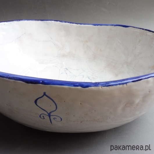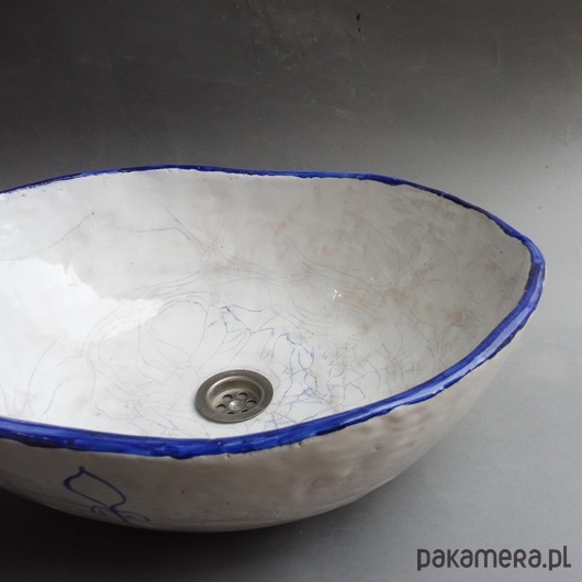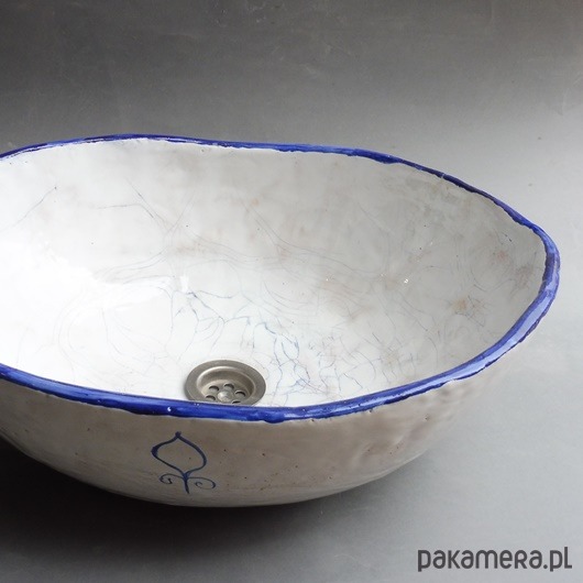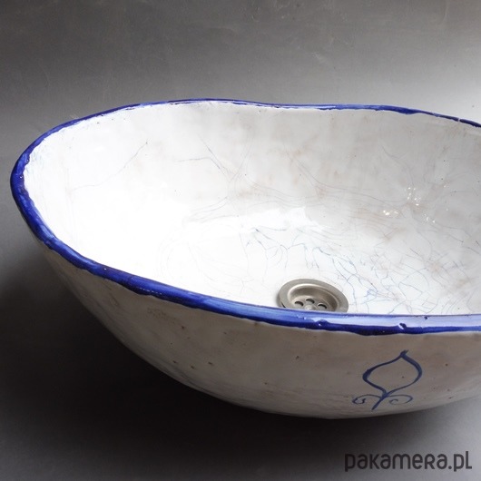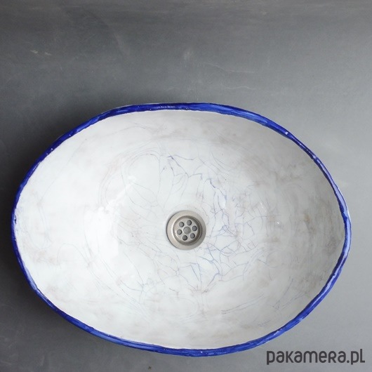 Umywalka ceramiczna, nablatowa, owalna, ręcznie formowana i malowana, przekątne umywalki to 47/35 cm, wysokość ok. 14 cm, polecam.