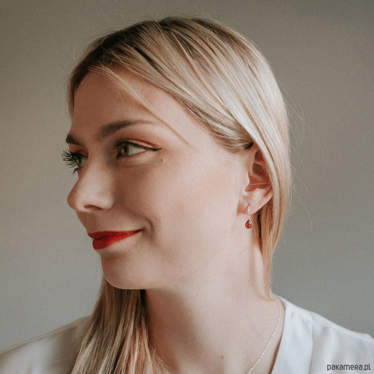 Unikalne, ręcznie wykonane kolczyki wiszące z naturalnego bursztynu bałtyckiego osadzonego w wysokiej jakości srebrze próby 925. Elegancki, minimalistyczny design w formie łezki podkreśla organiczną fakturę i ciepły, koniakowy odcień bursztynu, dzięki czemu biżuteria doskonale sprawdzi się zarówno na co dzień, jak i przy wyjątkowych okazjach.