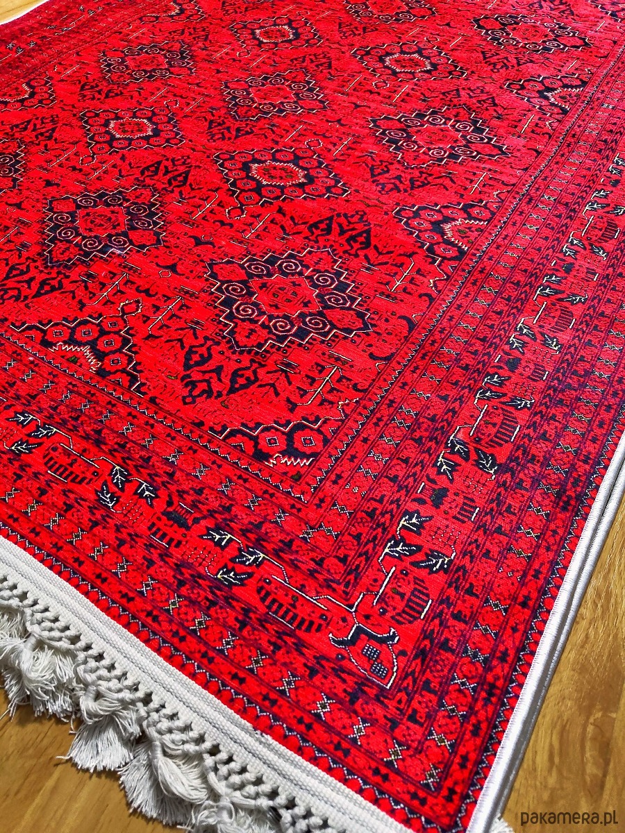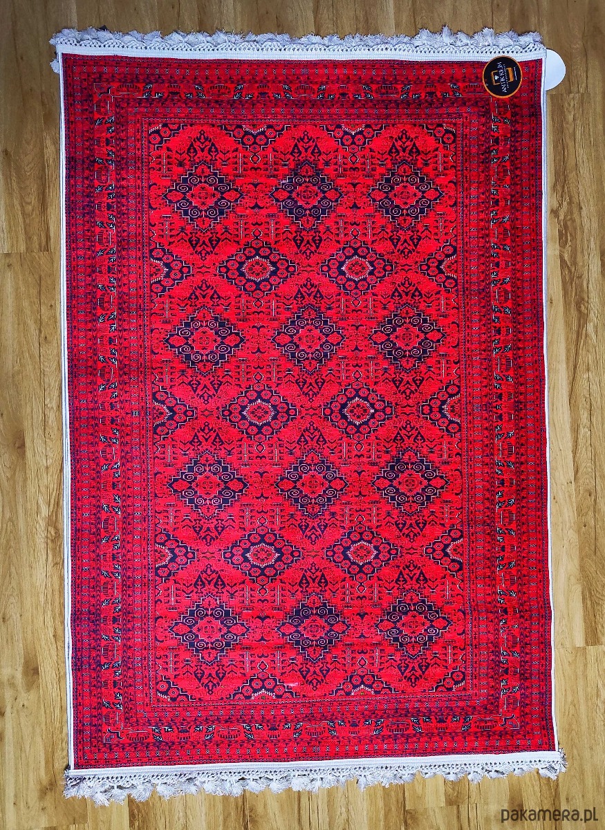 Unikalny dywan bałkański o wymiarach 120x180 cm, który wprowadza ciepło i elegancję do każdego wnętrza. Antybakteryjny, łatwy w praniu, z antypoślizgowym spodem.