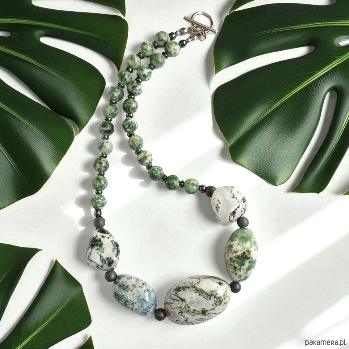 UNIKAT agat mszysty, jaspis, stal szlachetna : unikatowy MASYWNY naszyjnik