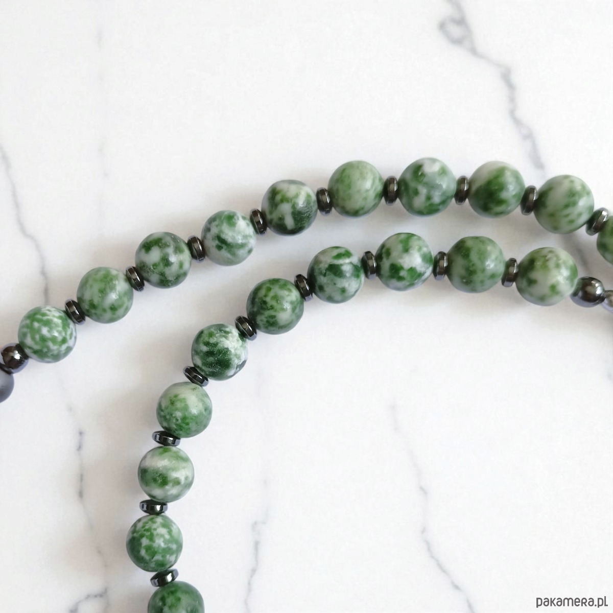 W górnej części naszyjnika: jaspis ziemny 8mm (idealnie pasujący kolorystycznie).