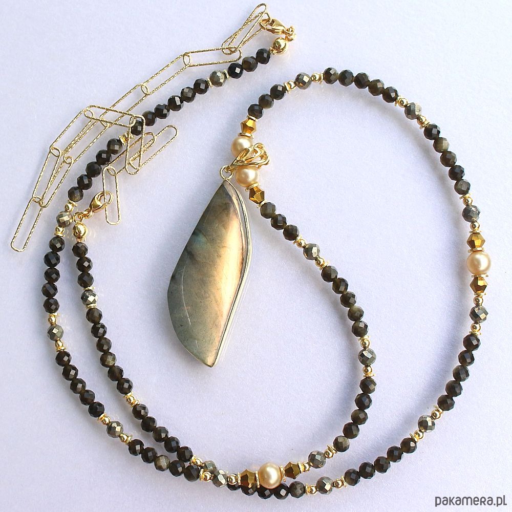 UNIKAT! Cudo! Złoty Labradoryt, złoty obsydian, piryt - Talizman Prawdy