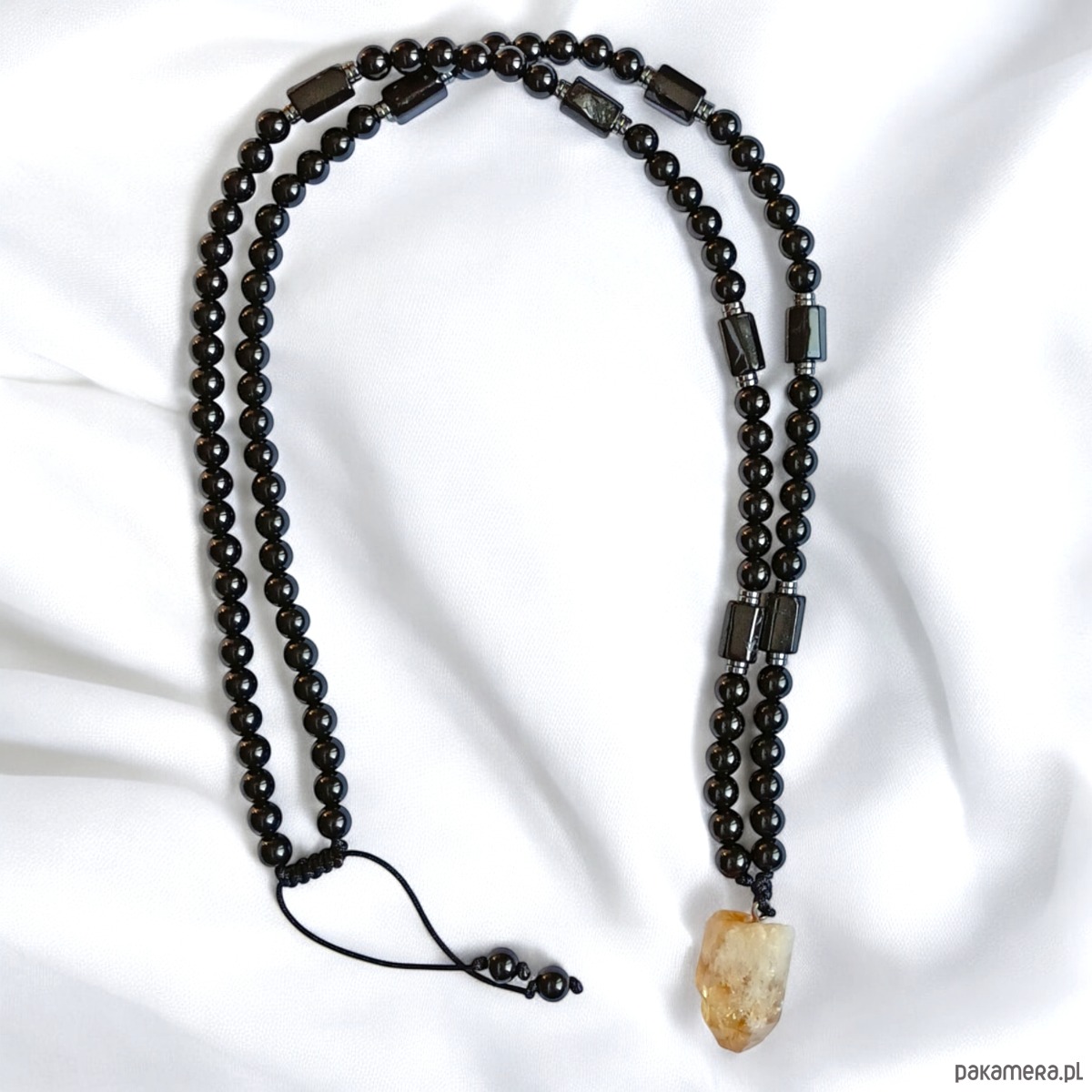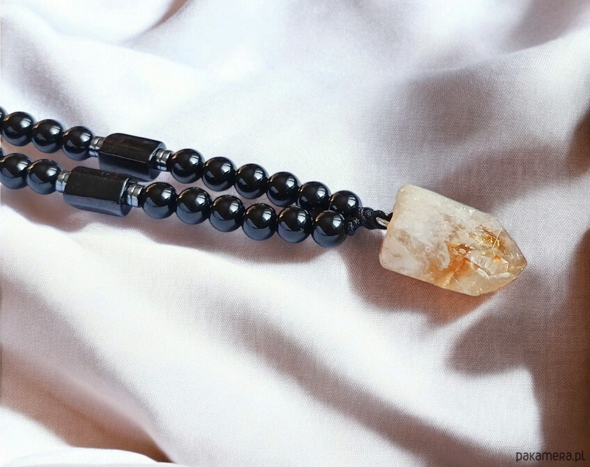 UNIKAT: cytryn, turmalin, onyks - naszyjnik MĘSKI